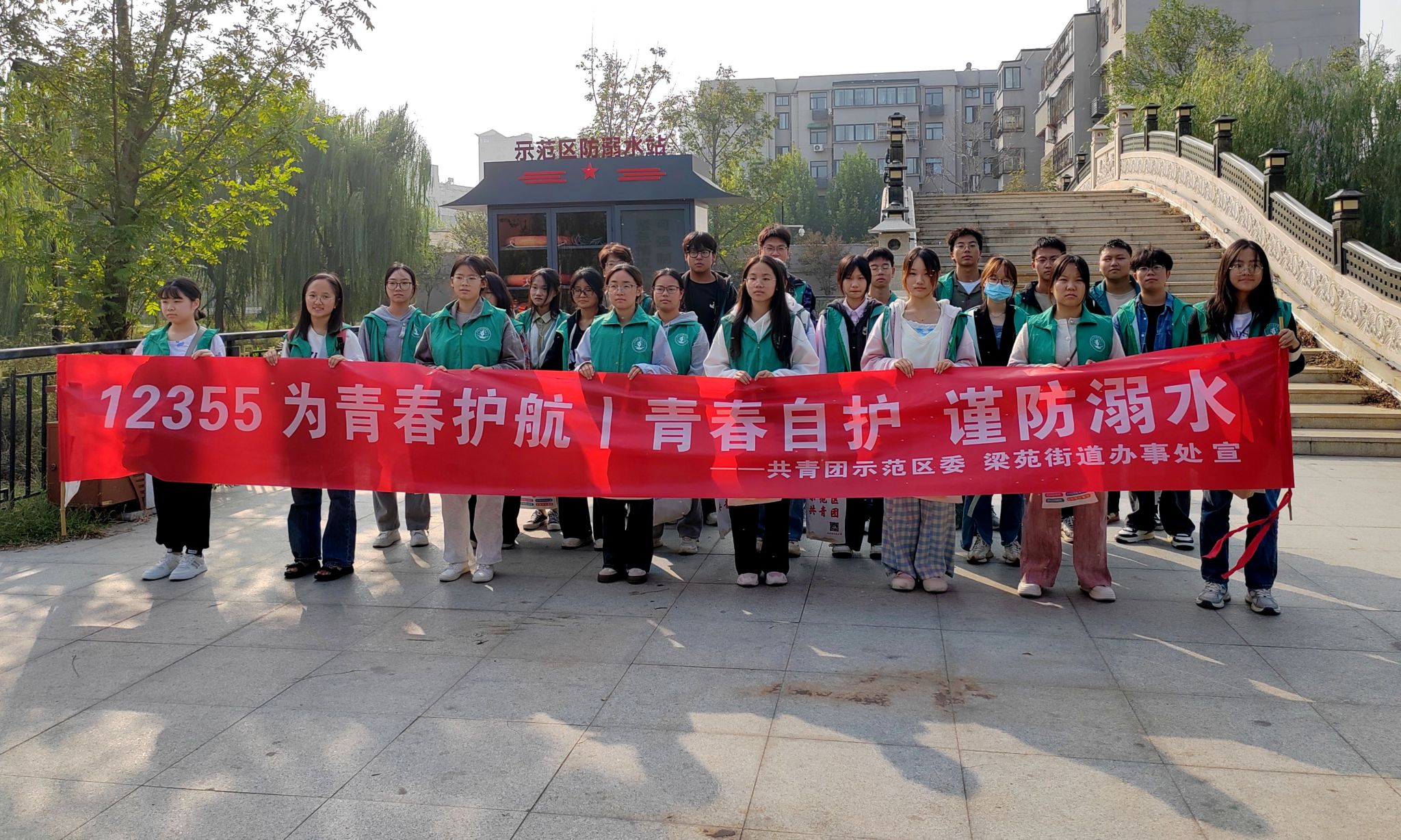 为进一步加强防溺水安全教育,提高我院学生的自我保护意识与自救能力,促进其身心健康和全面发展,10月10日下午,我院携手梁苑街道开展防溺水安全教育活动。我院2022级、2023级本科生志愿者积极参加。