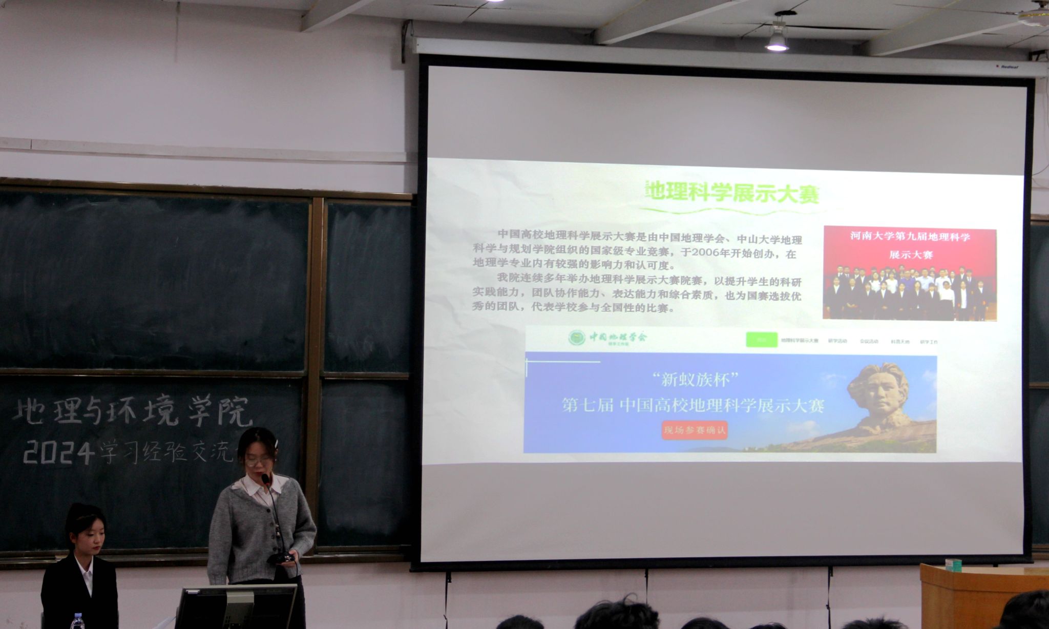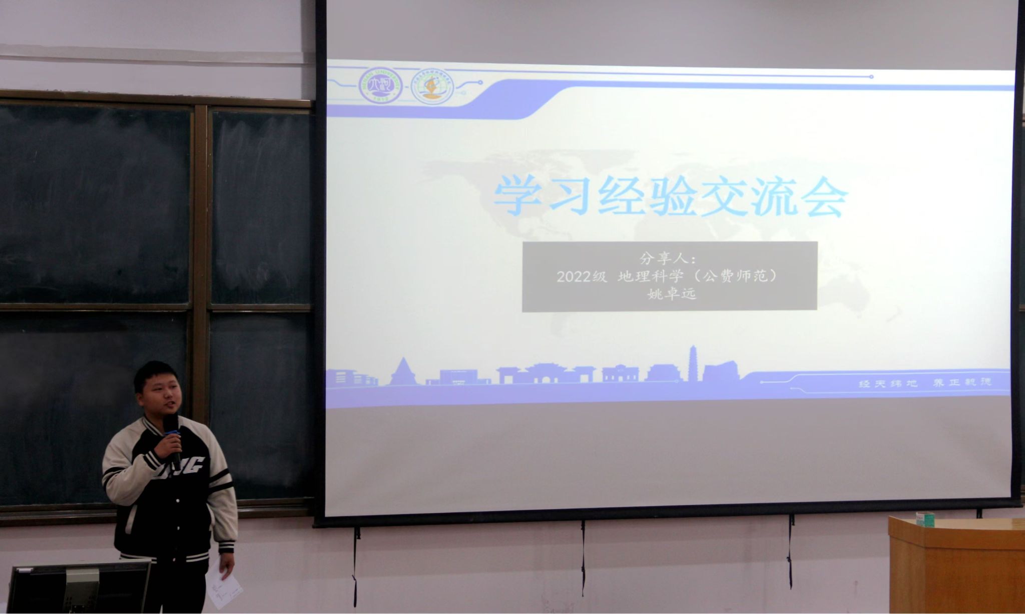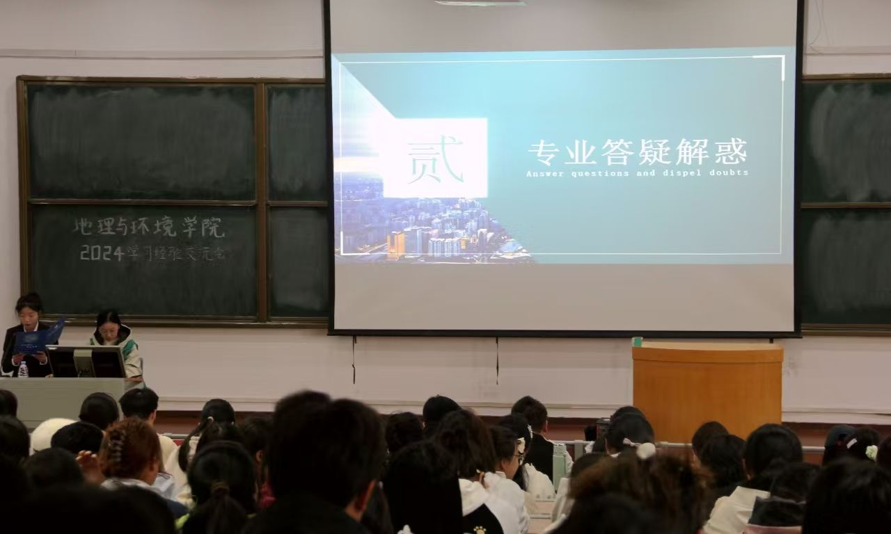 本次交流会分为学院概况展示、学长学姐分享经验、介绍证书与奖学金等事项、走进各项赛事活动、互动环节五个部分。赵雨梦首先对六位优秀学生代表进行介绍并表示热烈欢迎,他们分别是2022级环境科学班黄雅婷、地理科学(公费师范)班姚卓远、地理科学班诸葛昱滢、人文地理与城乡规划班谭铎、李子璇,2023级测绘工程班付小博。在对学院概况和学科建设情况进行简要介绍后,学生代表依次对各个专业进行解说,并向2024级新生分享自己在大学生活中的经验及对未来发展规划的建议。姚卓远从公费师范专业的角度出发,就专业优势与限制两方面进行阐述,强调了提升教学能力的重要性,提醒新生加强对三板内容的练习,为未来成为一名优秀的人民教师打下坚实基础。付小博则详细介绍了测绘工程专业的就业前景与发展现状,建议新生打好专业基础,明确专业需求,并给予新生鼓励。黄雅婷结合自身经历建议新生采取灵活的方式学习,将理论与知识相结合,鼓励新生积极与教师沟通,锻炼自己的科研能力。