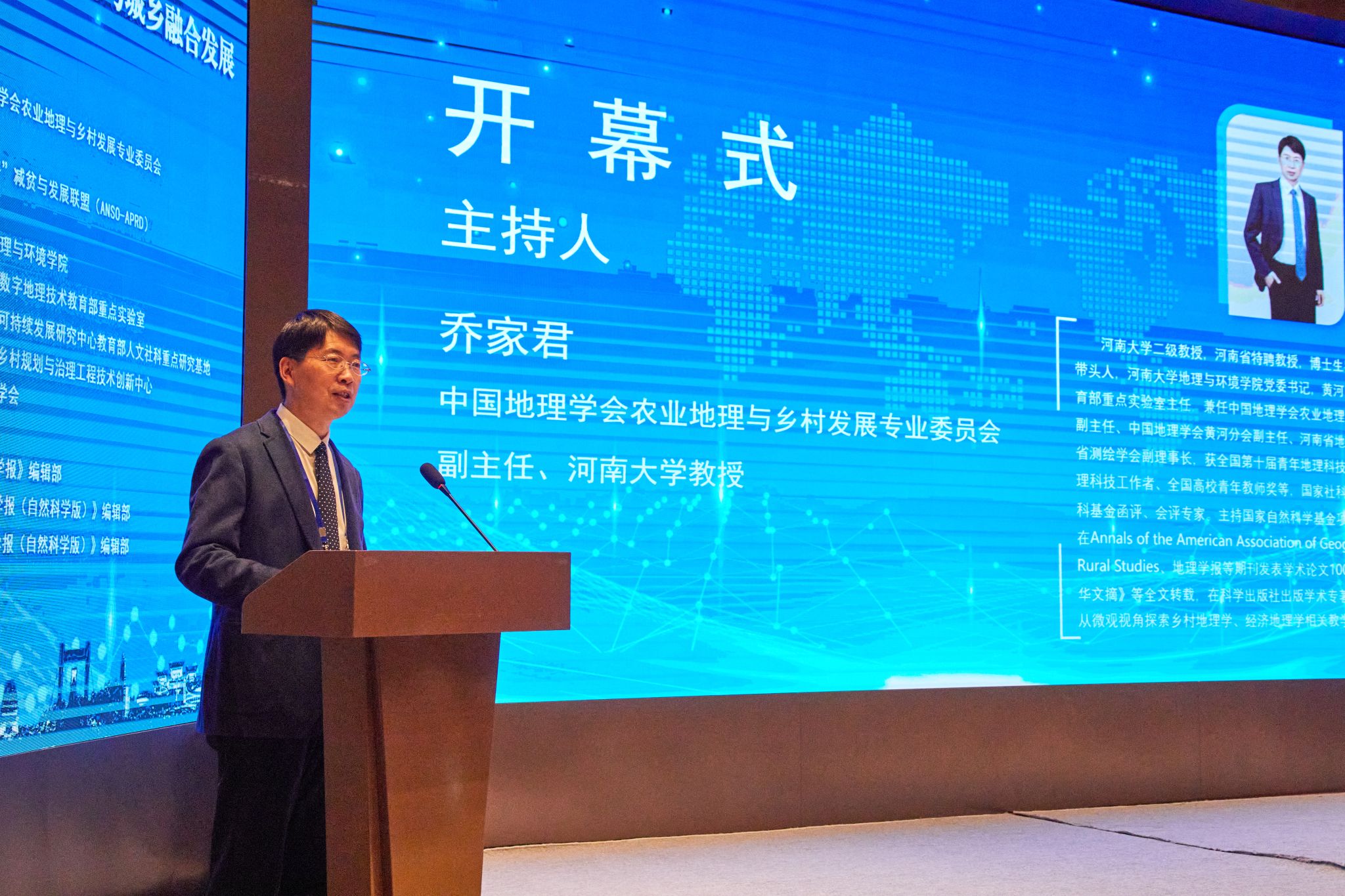 11月9日上午举行年会开幕式。yl23411永利集团官网学术副校长傅声雷教授、中国地理学会副理事长兼秘书长张国友研究员、河南省农业农村厅一级巡视员马万里同志、河南省住房和城乡建设厅村镇建设处副处长孙会昌同志、中国地理学会农业地理与乡村发展专业委员会主任龙花楼教授先后致辞。开幕式由yl23411永利集团官网乔家君教授主持。