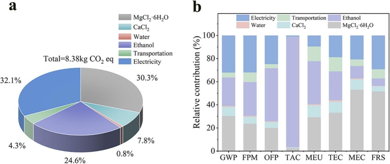 图4. CMBC合成对全球变暖潜势的影响(a)和CMBC生产环境影响的归一化结果(b)。