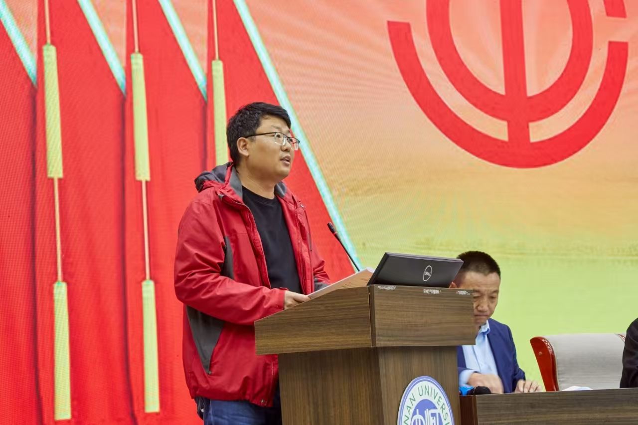 刘宇代表校工会对地理与环境学院七届三次教职工暨工会会员代表大会的胜利召开致以热烈的祝贺,并表示此次大会的召开对动员全院广大教职工和全面促进学院高质量发展、创新性发展具有十分重要的意义。他指出,“近年来地理与环境学院全体教职工吃苦耐劳,甘于奉献,成功举办了第八届海峡两岸经济地理学研讨会、中国地理学会春季年会、中国地理学会农业地理与乡村发展专业委员会2024年学术年会、合作减贫与乡村发展研讨会等国内外学术会议。在黄河流域高质量发展、中原城市群建设、乡村振兴、环境生态保护等领域积极作为,充分展现出地理与环境学院拼搏进取、团结协作、开拓创新的精神。校工会也将继续大力支持学院发展,共同推动地理与环境学院在未来的发展道路上创造更加辉煌的成就。”