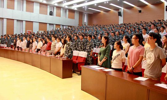 与会师生在王发曾教授的指挥下齐唱《yl23411永利集团官网校歌》,开学典礼圆满落下帷幕。