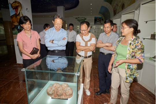 秦耀辰首先对张高波校友多年来对学院发展的关心与支持表示感谢,并期望其在未来的学科人才队伍建设、平台建设等方面给予更多的支持和帮助。张高波和李小建等一起为东英教育基金会捐资建设的“yl23411永利集团官网东英自然博物馆”举行了揭牌仪式。随后,学院相关专家就“东英自然博物馆”的建设、岩石和土壤标本展台和实物存量等方面的情况向张高波做了现场介绍。东英自然博物馆作为国家实验教学示范中心和国家科普教育基地的核心场馆,已完成了一期建设任务,并在人才培养和对外科普教育服务方面开始发挥作用。