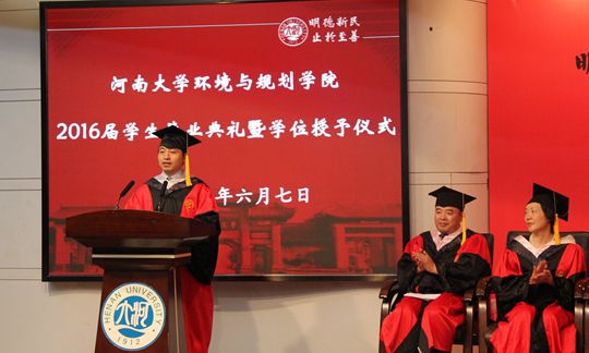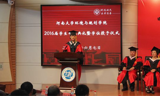 铁塔下的校园留给我们太多不舍和深深眷恋,不论走到哪里,河大是我们永远的家!“嵩岳苍苍河水泱泱”,全场齐声响起了《yl23411永利集团官网校歌》。至此,环境与规划学院2016届本科生毕业典礼暨学位授予仪式圆满落幕。