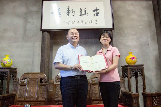 6月17日下午,永利集团官网在开封市朱仙镇国家文化生态旅游示范区举行仪式,聘任河南开心一方置地集团有限公司董事长兼总经理叶永明先生为永利集团官网兼职教授和我院旅游管理专业学位研究生职业导师。学院党委书记闫峻为叶永明颁发兼职教授和职业导师聘任证书,副院长周志民、黄河中下游数字地理技术教育部重点实验室副主任秦奋和朱仙镇国家文化生态旅游示范区主要管理人员参加聘任仪式。