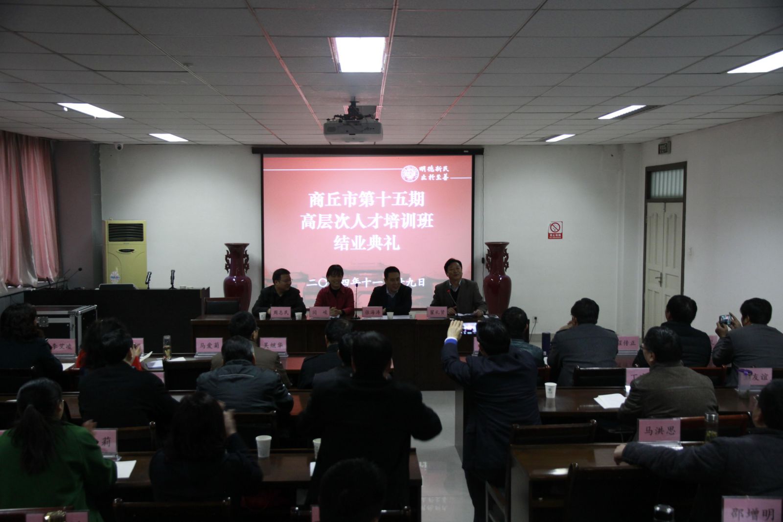 商丘市人才办副主任张海涛代表商丘市委组织部对组织安排此次培训工作的环境与规划学院相关领导及其工作人员表示感谢,对前来授课的各位教师表示敬意。同时也对参训学员在培训期间严格遵守培训纪律,保持了良好的学习风气和昂扬进取的商丘人风貌,圆满、出色地完成学习任务表示肯定。并寄望于学员们回到工作岗位后,能够勤于思考,勇于实践,把所学用在实际工作中,为全面推进商丘社会经济发展做出贡献。