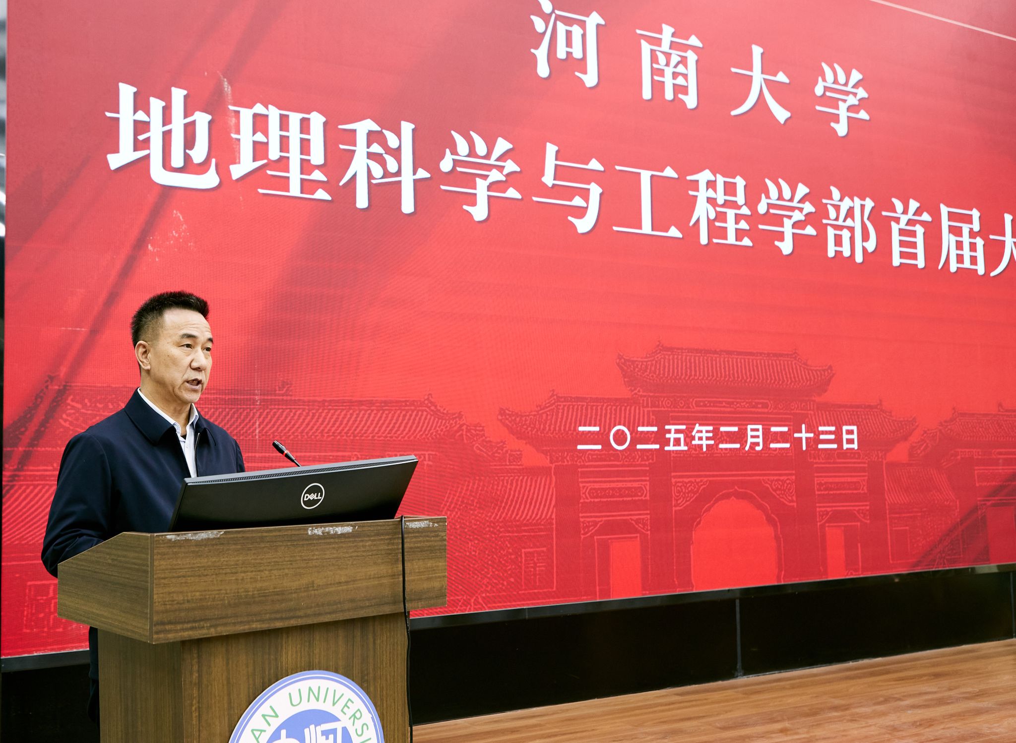 校党委书记季波在闭幕式上作总结讲话,系统阐述了地理科学与工程学部建设的战略意义与发展蓝图。他指出,2024年地理学科在思政党建、学科建设、科研创新、人才培养等领域取得突破性进展,特别是2024年成立的地理科学与工程学部,通过整合学科资源、搭建跨学科平台,深度对接黄河流域生态保护、乡村振兴等国家战略,彰显了"中原区位优势+学科交叉创新"的独特发展路径。面对2025年国家"十四五"收官和第六轮学科评估的关键节点,强调要构建"学科筑峰"新格局,矢志实现地理学科从B+到A类的跨越式发展,向世界一流学科迈进。他号召学部全体师生秉持自信、拼搏、开放、创新的新河大精神,坚持“十个第一”,实现“七大根本性转变”,重塑高效治理体系,以实际行动布新局、做实事,共同书写yl23411永利集团官网地理学科服务国家战略、助力中原崛起的新篇章。