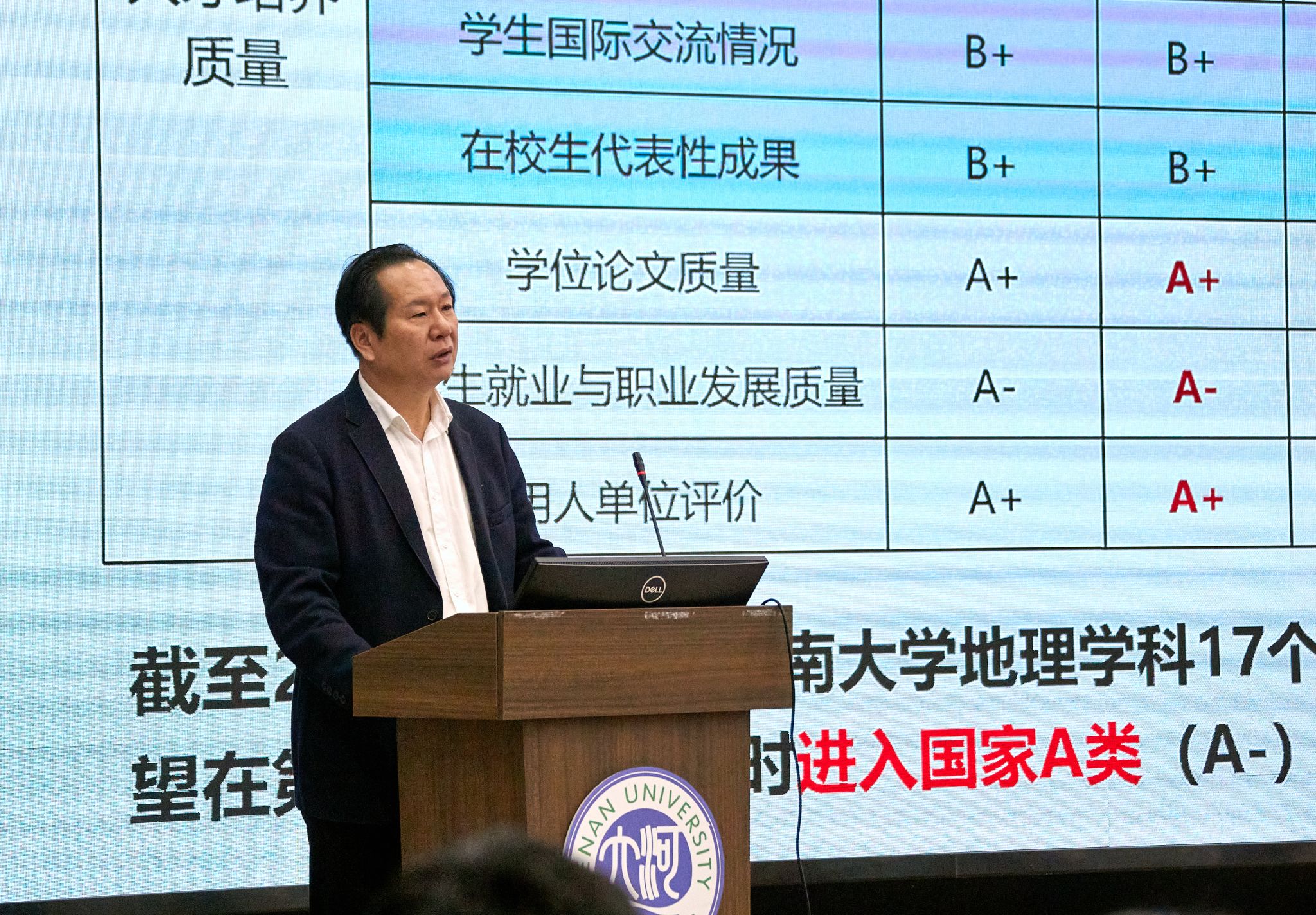 刘彦随致开幕词。他指出,学部的成立是地理学顺应新时代转型发展的必然选择,旨在推动学科向“系统性诊断、情景化模拟、工程化实践、产业化应用”转变。他强调,学部将致力于打破学科壁垒,整合校内外资源,以“一心一意一流学科”为目标,强化地理学综合优势,服务国家战略需求,通过多学科融合平台和创新合作机制,加速国际化进程。他呼吁全体师生团结奋进,推动河南地理学科早日跻身“国家队”,为“双一流”建设和中国式现代化贡献地理力量。