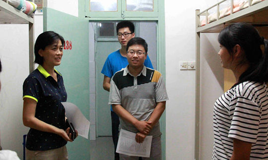 其间,每到一个宿舍,老师们都会亲切地问起同学们来自哪里、在这吃的、住的还习惯吗,晚上热吗。对于新生提出的问题,老师们也都详细地解答了新生的疑惑。