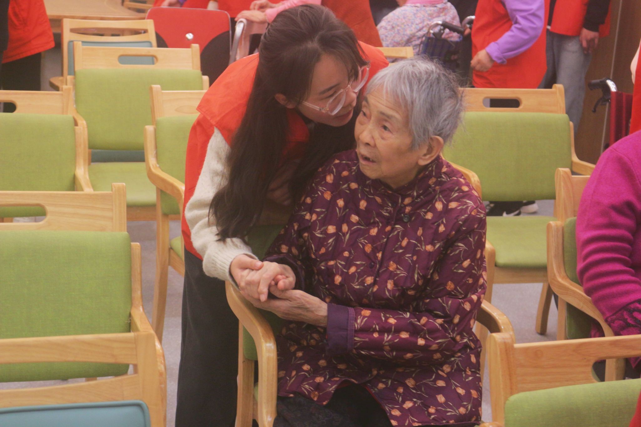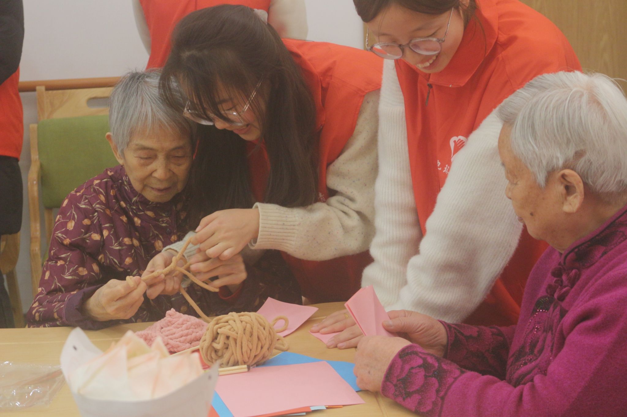 表演结束后,志愿者们与老人们一同拍摄大合照,定格下这美好的瞬间。此外,志愿者们还向老人赠送精心制作的手工艺品,并邀请他们一同参与织毛线、折纸等手工活动。在轻松惬意的氛围里,老人们逐渐敞开心扉,纷纷向志愿者们讲述自己年轻时的动人故事,有的回忆激情燃烧的奋斗岁月,有的分享相濡以沫的爱情点滴。志愿者们也热情回应,分享着生活中的新奇见闻与趣事,逗得老人们笑声不断。这一来一往的交流中,温暖与关爱在空气中静静流淌。