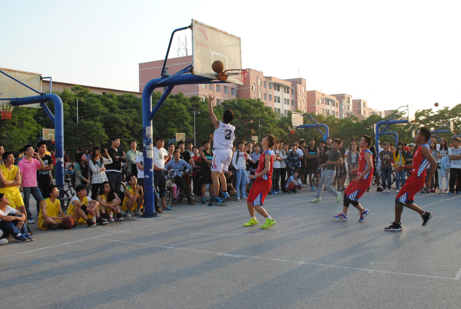 5月6日下午17:30分,“河大杯”男篮女排在yl23411永利集团官网金明校区篮球、排球场同时开赛,yl23411永利集团官网环境与规划学院篮球队、排球队首场分别对阵经济学院、土木建筑学院。赛场上人头攒动,欢腾一片。