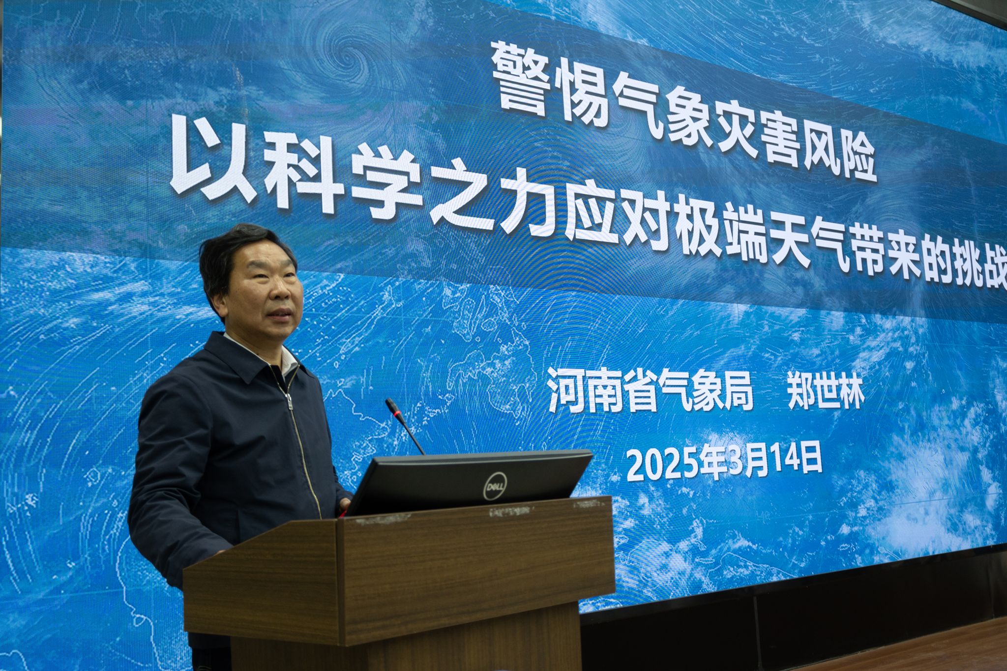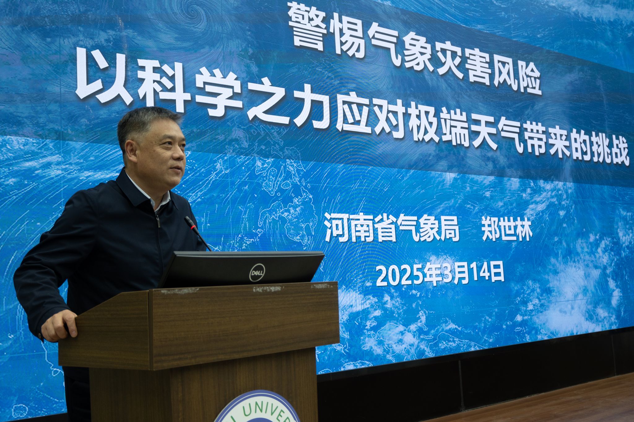 2025年3月23日是第65个世界气象日,为深入普及气象科学知识、提升我部师生防灾减灾意识、凝聚应对气候变化的青年力量,3月14日下午,我部特邀河南省气象局副局长、河南省气象学会副理事长郑世林,河南省气象局首席预报员、正高级工程师孔海江于金明校区锥形报告厅开展世界气象日主题讲座活动。河南省气象局相关领导班子成员,yl23411永利集团官网副院长邱永宽,韩艳副教授出席,学部部分本科生和研究生积极参加。活动由教育部人文社科重点研究基地黄河文明与可持续发展研究中心主任苗长虹主持。