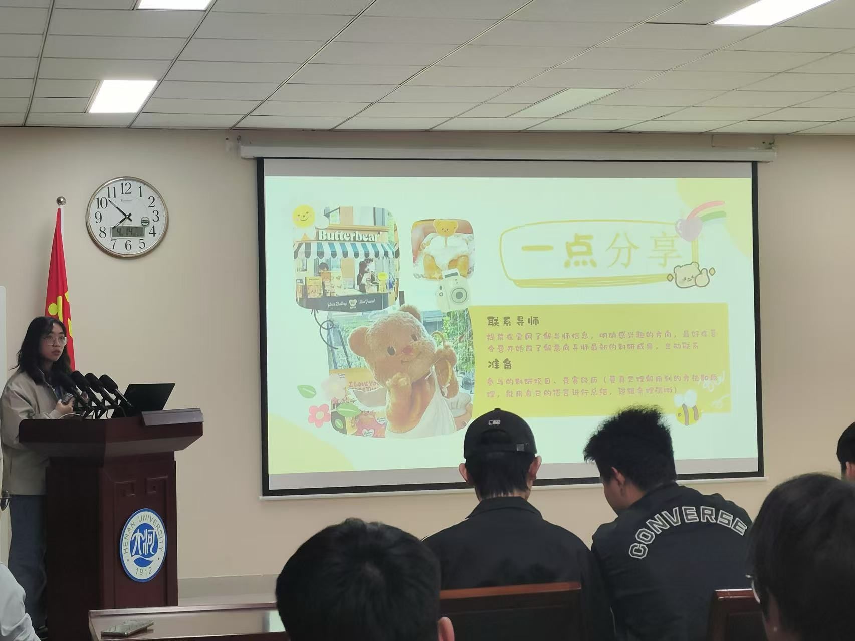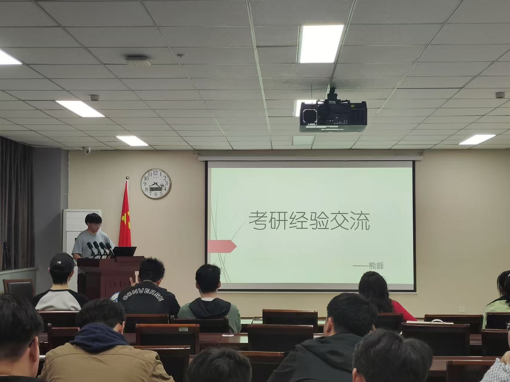 会议伊始,丁志伟对2021级参会学生的升学喜讯表示祝贺并基于自身作为研究生导师的心得感悟向学生们分享了三点经验。他表示,学生在规划读研路径时需秉持对目标院校的诚挚追求,坚守科研初心;同时应保持恒心毅力,持续提升专业能力;此外还要调整心态,以平稳心境适应新环境挑战。他强调备考阶段需全面规划,精准把握复试要点,凭借扎实科研积累和专业基础迎接学术进阶考验。随后,杨姝汀从院校选择、备考计划、学习攻略等方面进行考验经验分享。她认为择校作为方向性决策,需综合个人兴趣、职业规划与学科排名审慎抉择。在备考实操层面,建议学生提前搜集各科目资料,具体而言:政治可依托线上题库强化训练,英语着重提升阅读理解能力,数学需筑牢基础体系,专业课则应多方搜集信息构建知识框架,从而实现科学备考与能力进阶的有机统一。