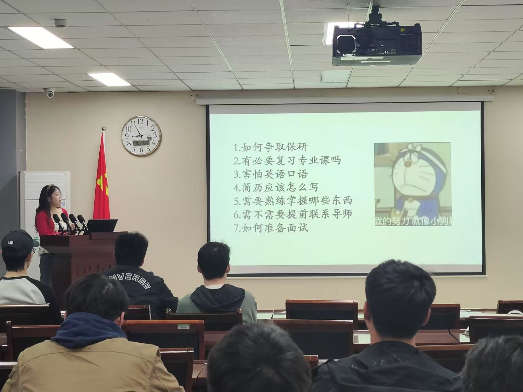 熊峰在择校策略方面补充说明,强调必须仔细研读招生简章,全面掌握初试复试流程细节。杨镓旺另辟蹊径介绍了公务员备考路径,从国考、省考到定向选调等方向逐一讲解,强调要善用应届生身份优势,重点突破行测科目,建议通过面试培训班提升应试能力。王柯岩分享的"上岸秘籍"提出,推免面试既要夯实专业基础又要关注学科前沿,简历应突出院校背景、科研成果及专业技能,并推荐通过模拟面试查缺补漏。