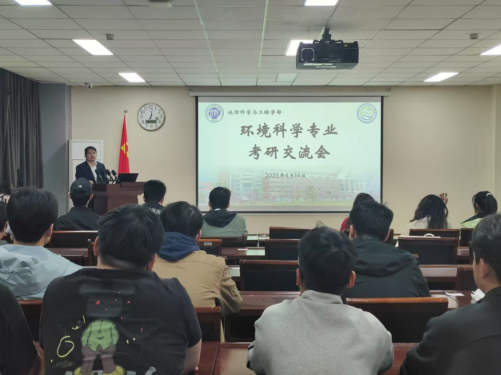 为增强我部环境科学专业学生对读研途径和发展方向的系统认知,助力他们科学规划升学目标,4月14日下午,我部环境科学系于地学楼二楼学术报告厅开展考研交流会,学院副院长丁志伟受邀参会并作讲话,学院2021级本科生杨姝汀、卢星宇、胡文煊、毕子钧、熊峰、李茜、杨镓旺、王柯岩和郎显赫积极分享升学经验,2022级和2023级环境科学专业学生参会学习,会议由环境科学专业教师李涛主持。