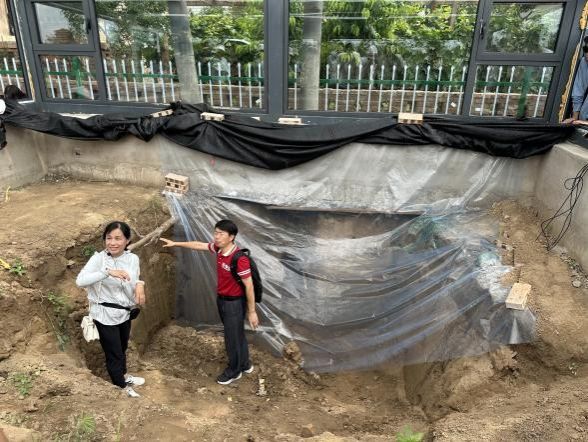 上午10时,黄河流域自然综合实习队到达yl23411永利集团官网地理工程小院进行参观学习。yl23411永利集团官网白秀玲教授为大家讲解了兰考县典型中低产潮士农田地理工程提质增效总体技术体系,重点介绍了绿色低碳“农一林一牧”复合高效模式以及“功能植物+功能动物”介导的农田病害绿色防控模式。随后,白秀玲带领师生们实地观察了小院的农田土壤剖面,阐述了盐碱地治理的工程思路;并观察了兰考重要经济作物——泡桐下的土壤剖面,其根系在兰考特有的自然环境中形成了既有横向扩展又有纵向深扎的独特分布形态。