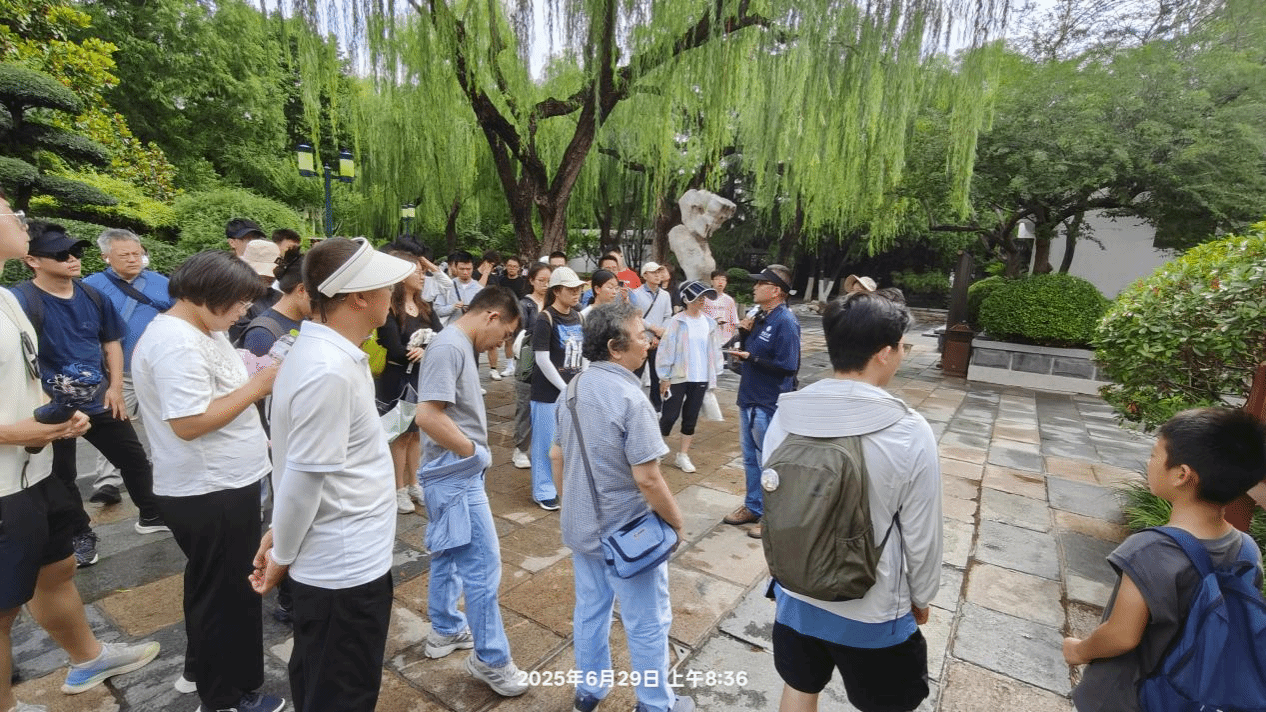 实习队首先抵达趵突泉公园。趵突泉位列济南“七十二名泉”之首,素有“天下第一泉”之誉。景区内古迹众多,包括泺源堂、观澜亭、李清照纪念堂等,承载着深厚的文化底蕴,为济南市标志性景观之一,彰显着泉城独特的自然与人文魅力。北京大学城市与环境学院蒙吉军研究员和许学工教授在公园东门处,结合景区绘制的趵突泉泉群地质公园示意图为同学们详细地讲解了济南成为“泉城”的地理条件基础、形成原因及影响因素。济南位于泰山断块凸起与华北凹陷的过渡带,千佛山断裂带与无影山断裂带在此交汇,从而形成了独特的“岩溶水漏斗区”。同时泉水喷涌的磅礴气势与清冽水质,印证了济南喀斯特地貌的水文特征。三股水柱四季恒温18℃,反映了地下岩溶结构的独特水系循环。古泉与历史建筑相映,自然与人文交融,深化了同学们对地理与文化共生关系的理解。此次游览既巩固了专业知识,亦激发了对自然奥秘的探索热情。