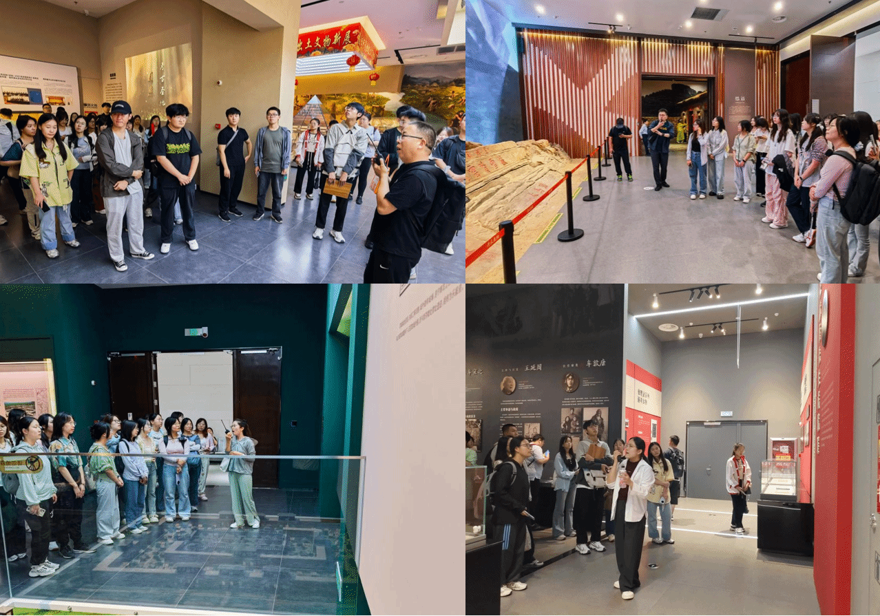 下午,学生们在李天奇的带领下来到日照市博物馆,了解日照市从古至今的发展变迁。参观过程中,别乾龙、时振钦、吴娜琳、屈利铭四位老师分别引导学生深入四个专题展厅进行讲解,从多维视角还原这座城市的文化演进与空间变迁。别乾龙聚焦日照史前文明,强调黑陶工艺、陶器符号等史前文明在中华早期国家形态中的重要地位;时振钦从地理学视角讲解了明清时期日照的海防建设、盐业发展与产业转型,重点分析了安东卫所防御体系与海洋文化遗产;吴娜琳带领学生通过观察青铜礼器与铭文,介绍了商周时期举国的形成、诸侯制度及其文化融合历程;屈利铭通过对“日照印记·民藏特展”与日照近现代历史人物展区进行讲解,使得学生对日照地区在近代社会转型、教育兴起与文化传承方面的重要进程有了更深层次的认知。