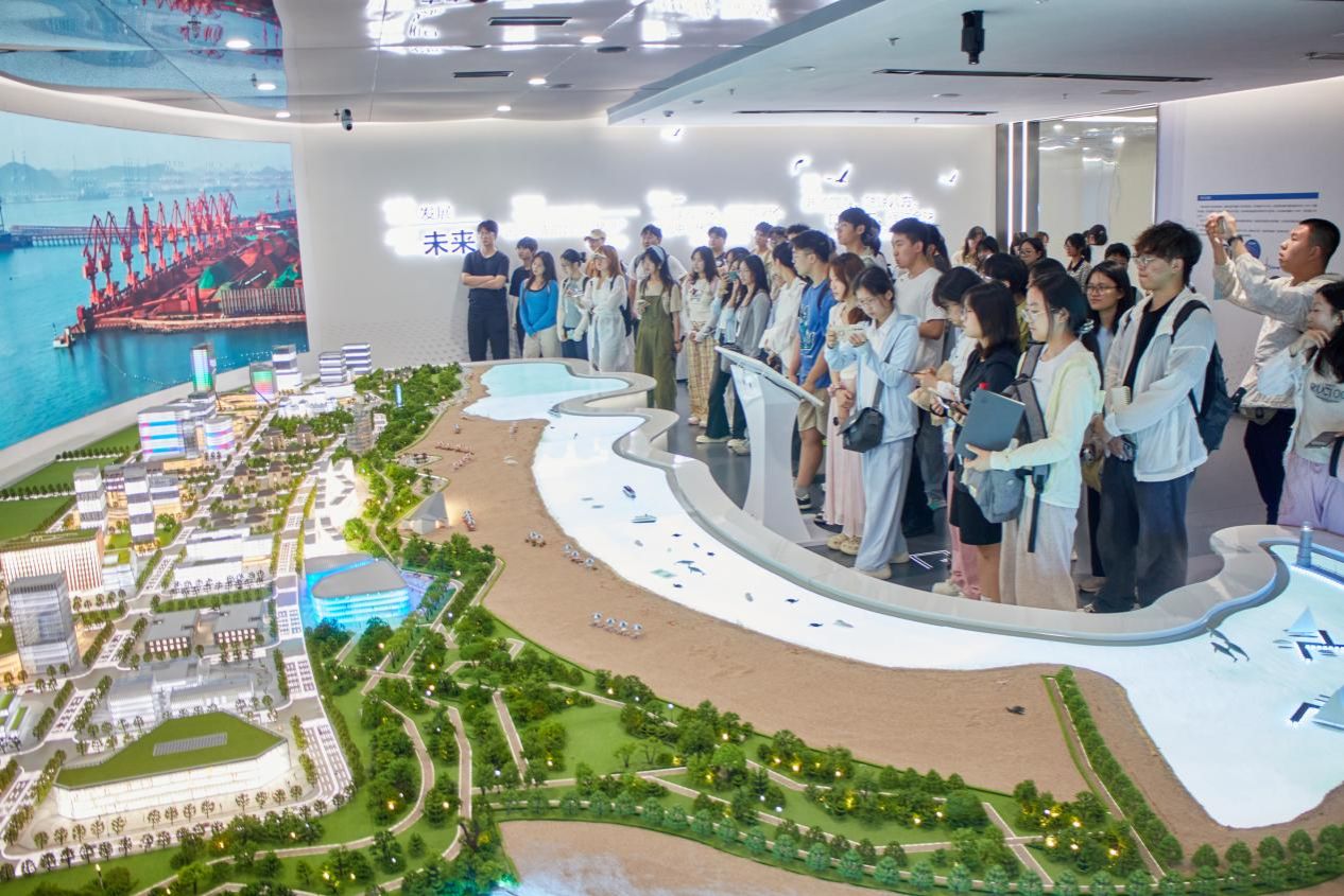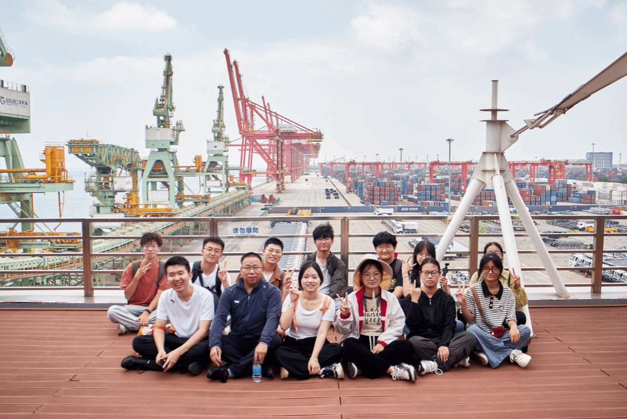 6月27日上午,实习队一行参观了日照港科技馆与日照港展览馆,深入了解了日照港在智能化、绿色化方面的转型成果。在科技馆中,港口机械模型、自动化装卸系统与智慧调度平台等展示了现代港口的核心运行机制。学生们通过VR体验与互动装置等感受到日照港在信息化、系统化管理下的高效运行。随后,实习队来到日照港展览馆通过日照港模型与图文展示等全面了解了它的发展历程、区位优势与功能布局。在展览馆五楼观景平台,学生们现场俯瞰港口作业景象,进一步认识到港口作为海陆交通枢纽,在带动城市空间布局和区域经济发展中的重要作用。