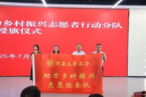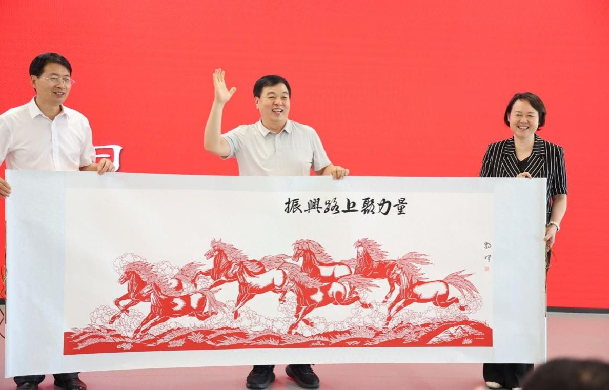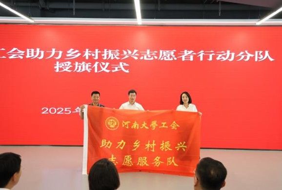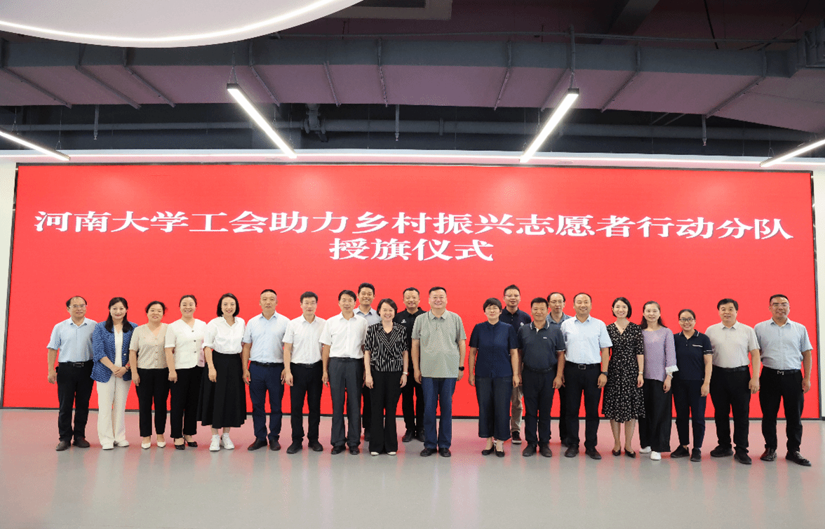 下午3时,校工会副主席徐飞主持yl23411永利集团官网示范性劳模和工匠人才乡村振兴研究创新工作室挂牌、yl23411永利集团官网工会助力乡村振兴志愿者行动分队授旗仪式。兰考县县委常委、副县长、国家乡村振兴(兰考)研究院副院长孟珊致辞,她对yl23411永利集团官网长期以来对兰考县的支持和帮助表示由衷感谢,对yl23411永利集团官网工会组织此次活动及各位专家的到来表示热烈欢迎。她强调,建设国家乡村振兴(兰考)研究院是yl23411永利集团官网与兰考县携手共进的生动写照,yl23411永利集团官网在兰考县脱贫攻坚、巩固脱贫攻坚成果和乡村振兴有效衔接、数治兰考等关键阶段都倾情奉献“河大智慧、河大方案”,真正将习近平总书记提出的“三起来”落到实处。仪式上,校工会刘宇、徐飞、刘银华分别向助力乡村振兴志愿者行动分队队长乔家君、刘百陆、霍雷授旗。省总工会命名的张朝晖工作室领衔人张朝晖,献上了他精心设计、亲手剪出的剪纸“八骏图”,寓意yl23411永利集团官网和兰考在乡村振兴伟大事业中凝心聚力,奋勇争先!