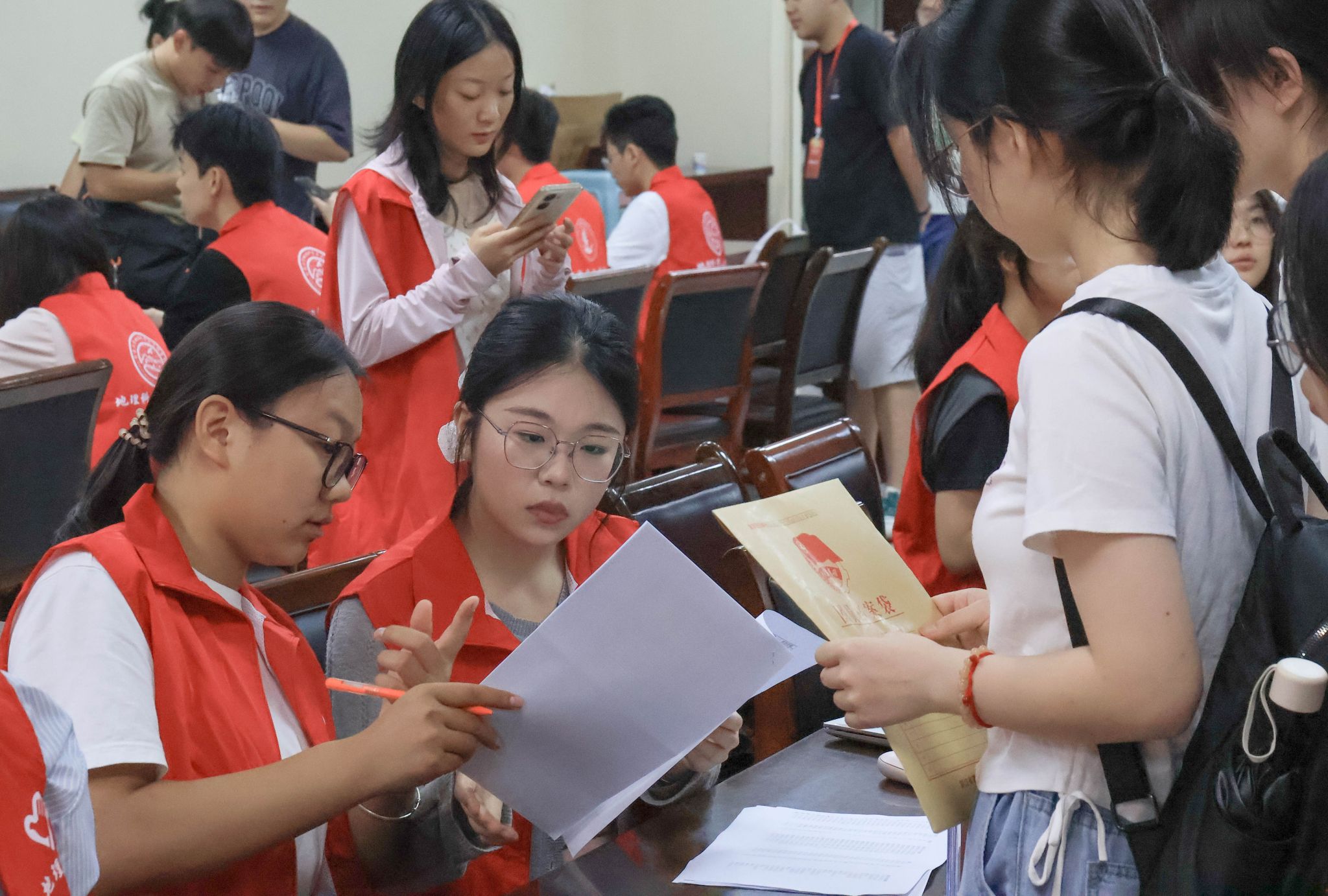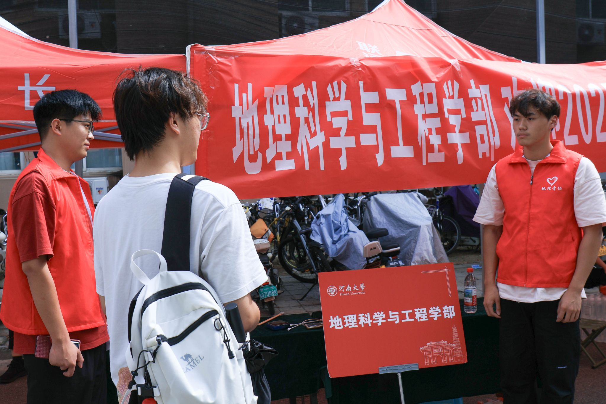 8月30日上午,学部迎新报到工作正式启动。学部以“暖心、高效、有序”为宗旨,多维布局构建有序迎新全流程:在学校大西门学部设置迎新引导点,志愿者们早早守候,笑容洋溢,为初到校园的新生指引路径、解答疑问,传递第一缕学部温情;地学楼二楼报告厅作为迎新大本营,承担注册咨询、资料核验等一站式服务,流程清晰、秩序井然,极大提升了报道效率。同时,学部注重文化育人与价值传递。学部门口有序陈列的学生竞赛成果展板,生动展现我部学子在学术竞赛、实践活动中取得的突出成绩,激发新生对专业学习的向往;院士风采和师资介绍栏,则让新生直观感受到学部深厚的学术底蕴与雄厚的师资力量,悄然播下追逐学术梦想的种子。