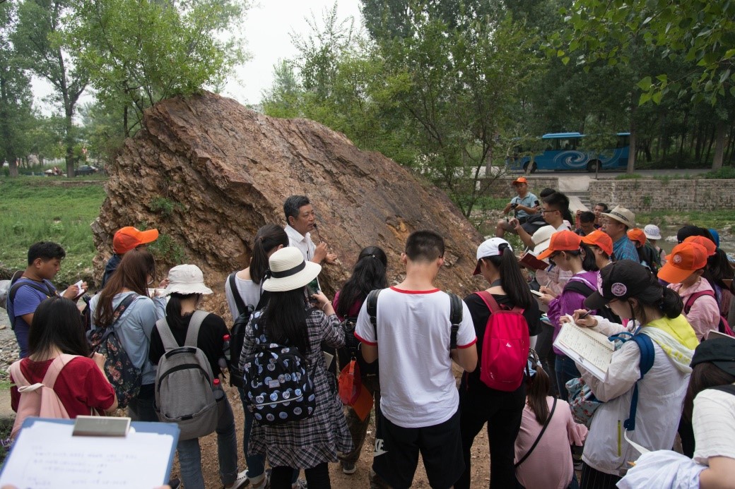 我院作为牵头承办单位,承担了开封新郑门、开封古城墙、黄河地上悬河、兰考农区经济地理、嵩山地质实习基地、小浪底工程的实习。7月29日下午,实习队考察了开封新郑门遗址、开封古城墙和yl23411永利集团官网老校区,马建华教授详细讲解了新郑门 “城摞城”的考古景观及其演变过程。7月30日,实习师生考察了黄河地上悬河、兰考东坝头的黄河“U”型转弯、张庄四面红旗展示馆、焦裕禄精神体验教育基地、兰考地区洪泛沉积地层和位于兰考县的徐场民族乐器村,马建华教授和乔家君教授分别从自然和人文两个方面详细讲解了黄河地上悬河的形成过程、治理方案和未来发展以及焦裕禄治理兰考环境的方法和兰考农区经济地理。7月31日,联合实习师生考察了位于登封市告成镇的观星台和登封城南的玉皇庙断层,马建华教授和刘玉振教授先后讲解了观星台、景符和日晷等天文仪器的结构和原理以及地质历史时期发生在嵩山地区的构造运动。8月1日,实习师生沿逍遥谷考察了嵩山,刘玉振教授沿途讲解了洪积扇特征及原因、辉绿岩墙的岩性特征、嵩阳运动遗迹的形成原因和自然地理环境的垂直变化规律。当天晚上,学生以小组为单位进行了本阶段交流汇报,参加实习的老师对学生的研究内容进行了点评,肯定了学生的实习收获,也提出了中肯的建议。8月2日,实习师生考察了小浪底水利枢纽工程,秦奋教授详细讲解了黄河水利调水调沙的机理和对下游的影响;下午yl23411永利集团官网段联合实习结束,实习师生乘坐高铁前往西安,参加由陕西师范大学组织的下一阶段实习。