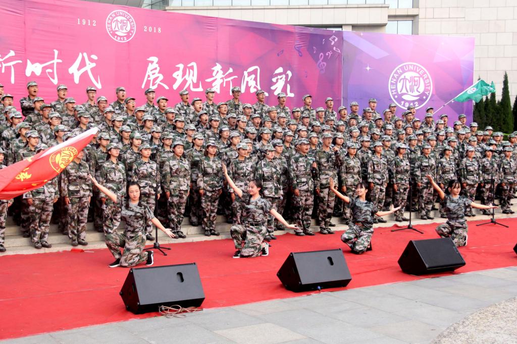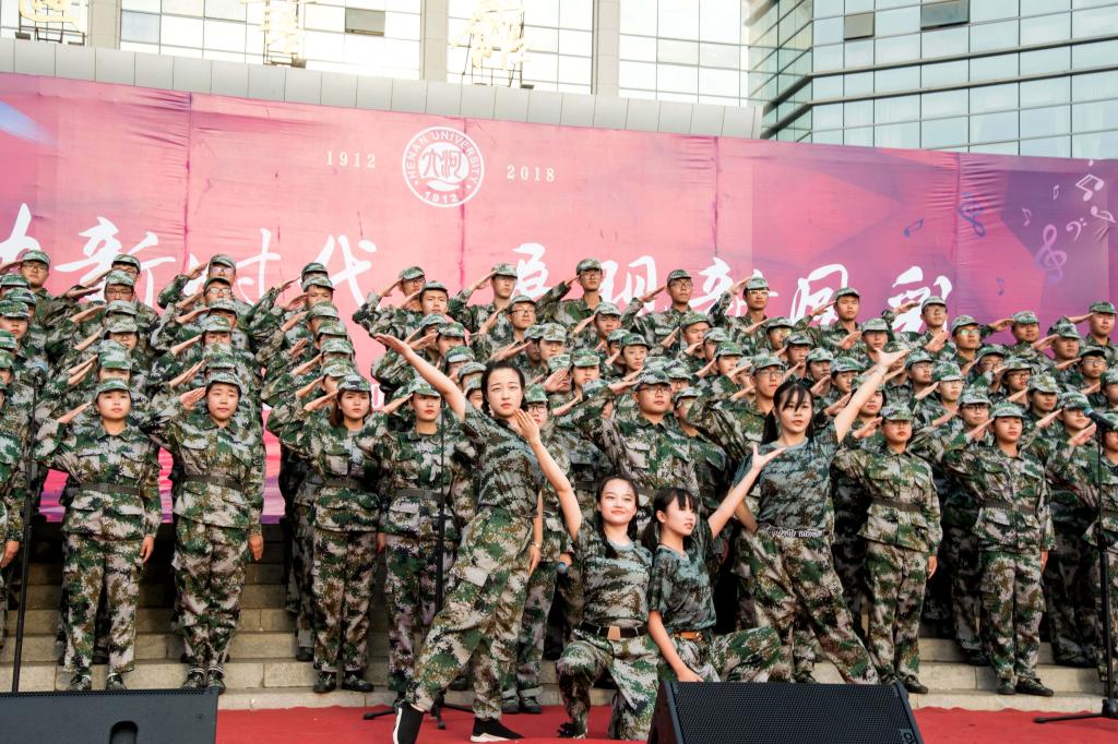 9月12日下午,以“建功新时代,展现新风采”为主题的2018级新生军训歌咏比赛在金明校区明德广场隆重举行。我院新生两百余人演唱了《yl23411永利集团官网校歌》以及自选曲目《光荣与梦想》并取得优异成绩。