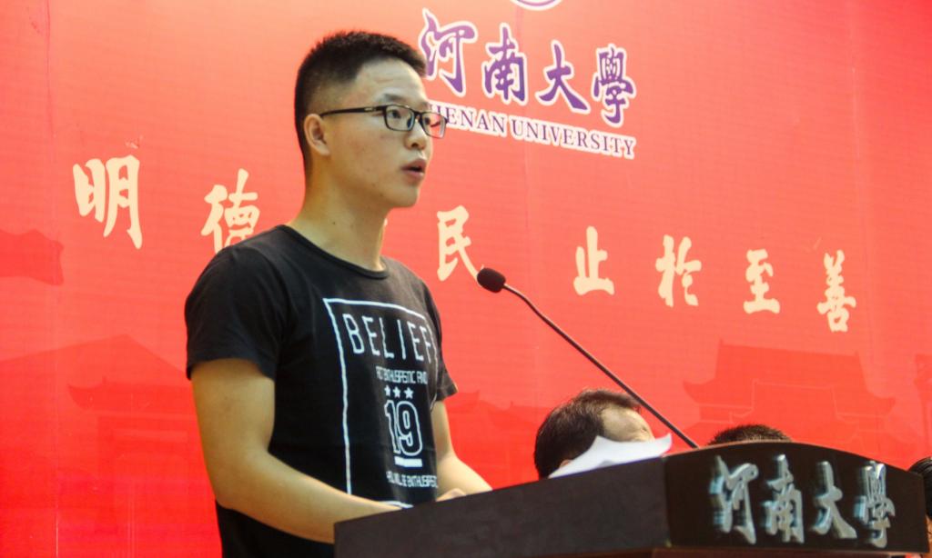 在校生代表2018级土地资源管理专业硕士研究生张宇,新生代表2019级地理科学专业本科生金艺辰同学相继发言。