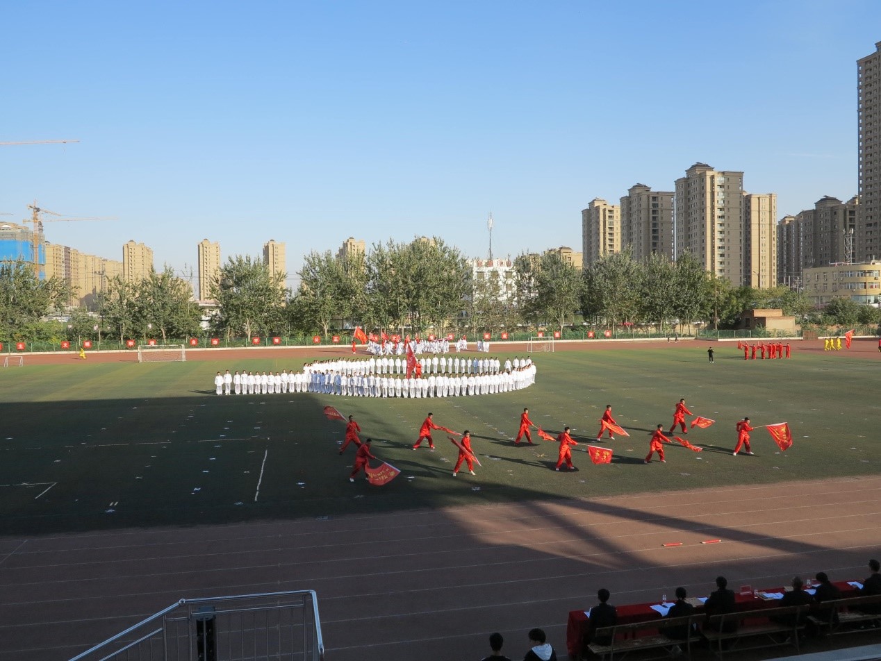 经过一个月的辛苦训练,金明校区26支代表队共千余名研究生参加了此次比赛。作为第十三个出场的参赛队伍,我院代表队十个“大旗”打头阵,奔疾如风,气贯长虹。紧接着由参赛人员组成的四条蛟龙从操场的的斜对角蜿蜒前进,相望成圆形迎接环规“小旗”的舞动,“小旗”个个英姿飒爽,挥旗整齐划一,气势磅礴,两只舞狮在前方表演,赢得台上台下观众阵阵欢呼。参赛人员拳法有力,招式连贯自然、开合有序,一柔一刚之处,百转千回,行云流水的场面尽显沉稳之品性,充分展现了太极拳的无穷魅力。