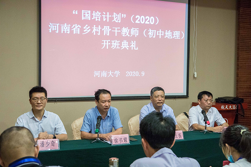金秋九月,秋风送爽。在河南省开封市航天大酒店,迎来了2020年国培计划初中地理骨干教师培训班的五十名学员。九月十二日上午九点,开班典礼在六楼会议室准时召开。出席开班典礼的领导有yl23411永利集团官网远程与继续教育学院院长、yl23411永利集团官网培训中心主任徐书耀;yl23411永利集团官网远程与继续教育学院副院长、yl23411永利集团官网培训中心副主任刘玉振;yl23411永利集团官网环境与规划学院行政副院长潘少奇;yl23411永利集团官网环境与规划学院成人教育办公室主任仝致琦。