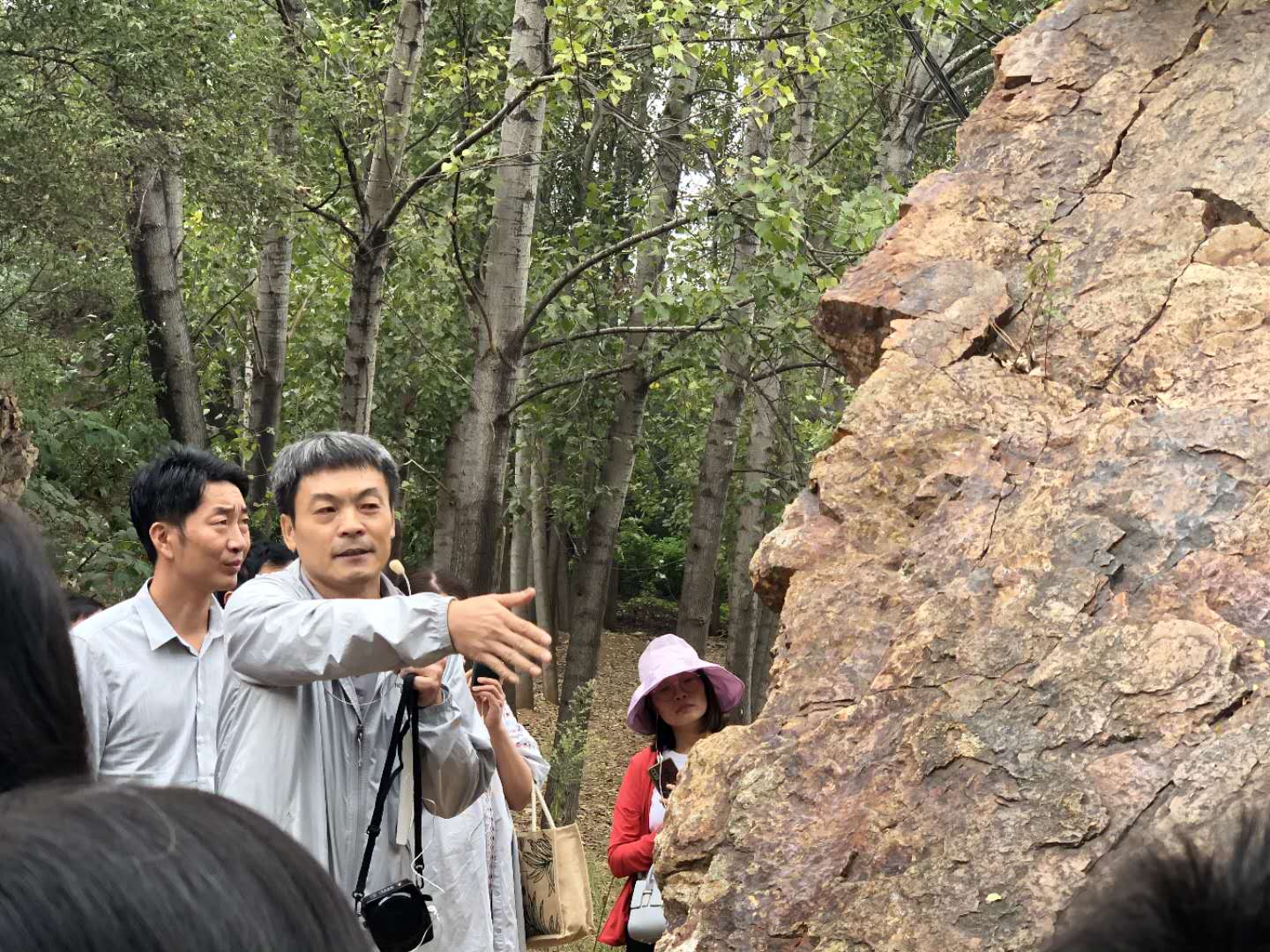二十六日下午,学员乘车到达中国五岳之一──中岳嵩山。目前,嵩山地区出露着太古代、元古代、古生代、中生代、新生代五个地质时期的变质岩和沉积岩地层序列,具有“五代同堂”的天然地质博物馆之称。在嵩山地质博物馆内,学员们在两位老师的带领下共同学习了岩石褶皱与嵩山经历的三次地壳运动。