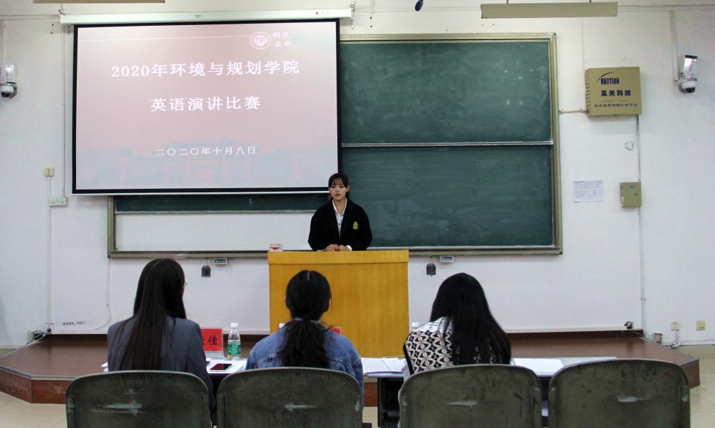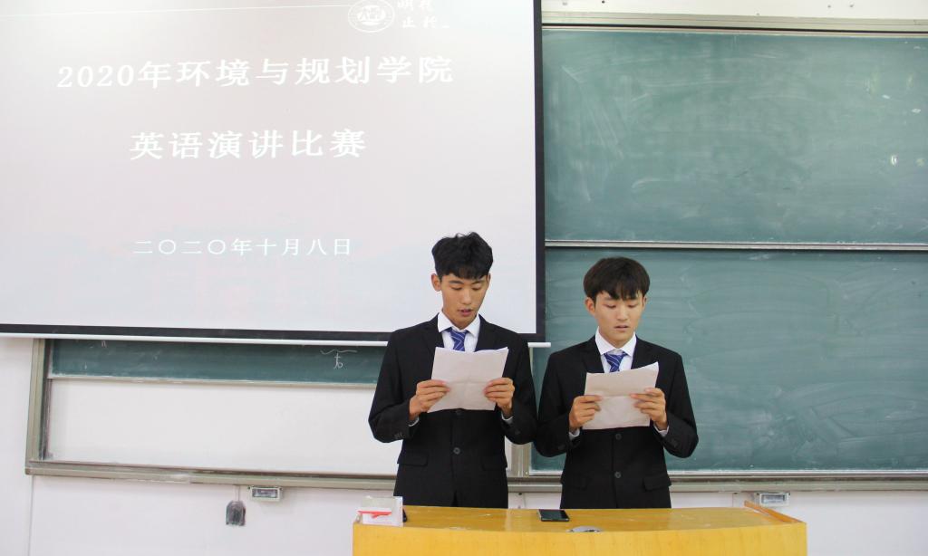 为激发学生学习英语的激情,提高学生的英语口语能力,促进学院英语素质教育的发展。10月8日下午,yl23411永利集团官网环境与规划学院2020年英语演讲比赛在金明校区综合教学楼2203教室举办。本次比赛由环境与规划学院主办,学院团委学生会承办,2020级学生杜启贤、江尚勋主持,学生代表何颖超、于艳可、王佳佳担任评委。