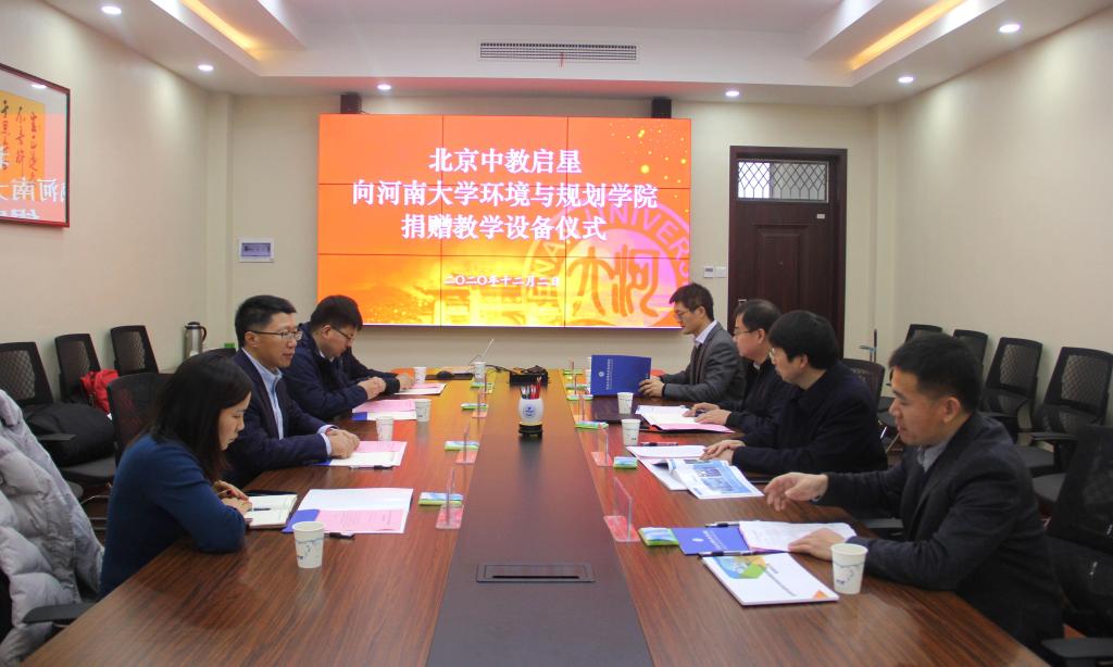 12月2日,北京中教启星向我院捐赠设备仪式在我院三楼研讨厅正式举行。北京中教启星科技股份有限公司总裁王天祥,我院党委书记郑洪涛,执行院长、党委副书记乔家君,党委副书记徐小军,副院长潘少奇,地理科学系教师张广花及捐赠公司部分成员出席捐赠仪式,仪式由徐小军主持。