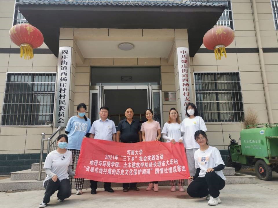 为深入学习贯彻习近平新时代中国特色社会主义思想和党的十九大系列会议精神,发挥青年学生在社会发展中的重要作用,探索省级传统村落大车村及其周边村庄西杨庄的历史文化保护现状,7月31日,yl23411永利集团官网“我们是乡村振兴小小分队” 国情社情观察团队一行6名学生在地理与环境学院副教授、团队指导老师吴娜琳的带领下,前往长垣市魏庄街道开展了为期2天的社会实践活动。