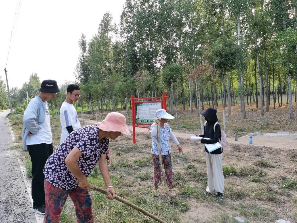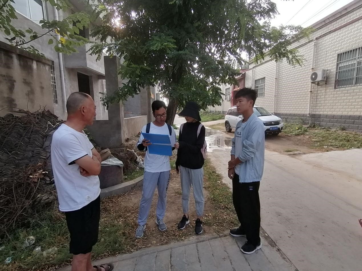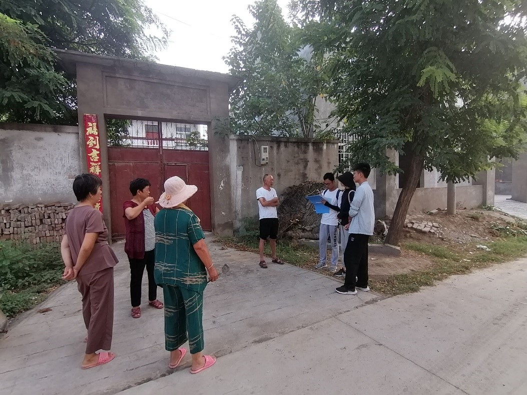 7月15-16日,调研团分别前往位于黄河滩区的柳园口乡牛庄村及大辛庄村开展实地调研活动。柳园口乡位于开封市北部,紧临黄河南岸,主要种植作物为水稻、玉米、小麦、大豆等,由于其地理优势及政府政策扶持,家家户户的地头上都安装了抽水泵,为村民灌溉农田节约了许多人力物力,带来了许多便利。调研团成员根据设计好的问卷,对村民们种植的作物种类、作物产量情况等农业中的相关问题进行了访谈式的调查。