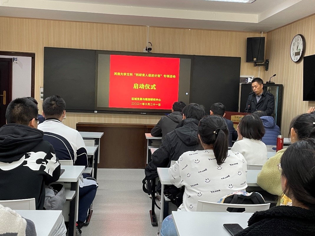 2021年10月21日下午,区域发展与规划研究中心在环境与规划国家级实验教学示范中心101教室举行yl23411永利集团官网文科“科研育人促进计划”专项活动启动仪式。专项活动指导小组指导教师乔家君、丁志伟、李天奇、焦文献、梁流涛、王小敏、崔洋等和中心招录的40名本科生成员参加会议,会议由中心主任刘静玉主持。