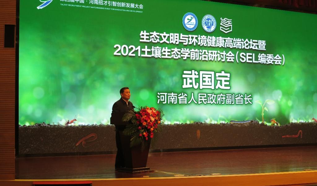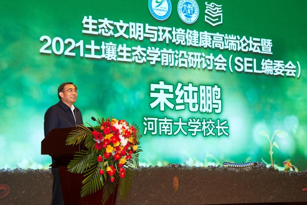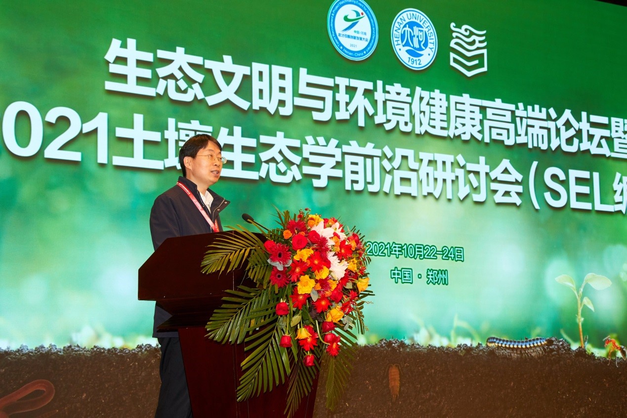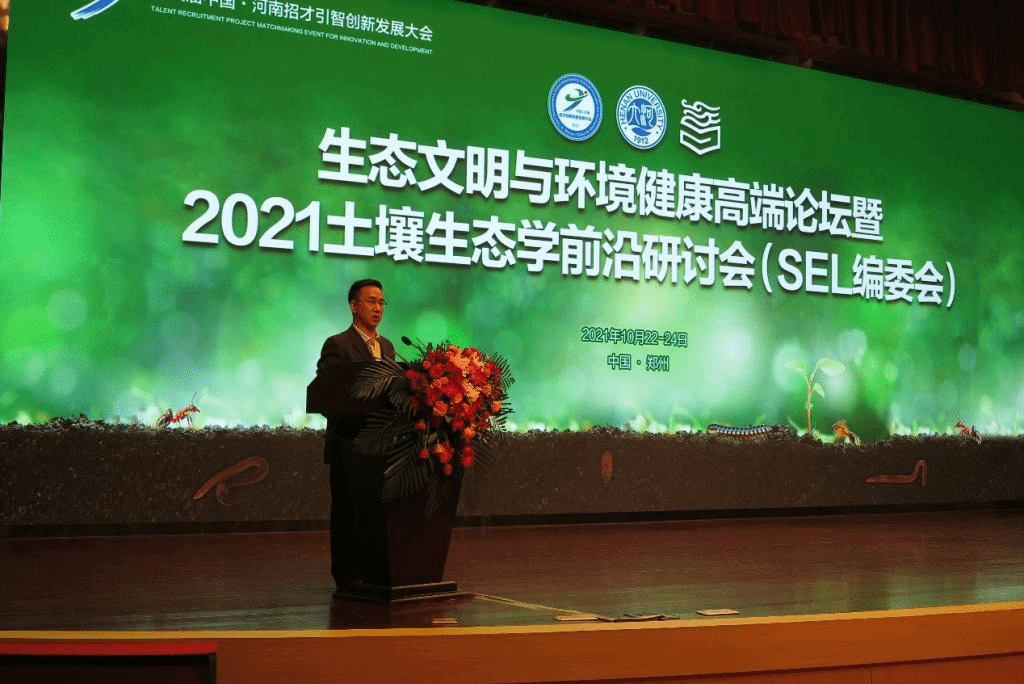 2021年10月23日至24日,“生态文明与环境健康高端论坛暨2021土壤生态学前沿研讨会(SEL编委会)”在郑州国际会展中心大河厅召开。本次研讨会是中国·河南第四届招才引智创新发展大会系列论坛之一,此次会议由yl23411永利集团官网、高等教育出版社主办,yl23411永利集团官网地理与环境学院、Soil Ecology Letters 期刊承办,会议采用“线上线下融合”方式进行。来自全国各地土壤生态学、土壤微生物学、土壤动物学等相关领域的200多位专家、学者线下参会,3000多人线上聆听。本次研讨会以“ 生态文明与环境健康”为主题,围绕近年来土壤生态学领域的前沿和核心问题展开研讨与交流。