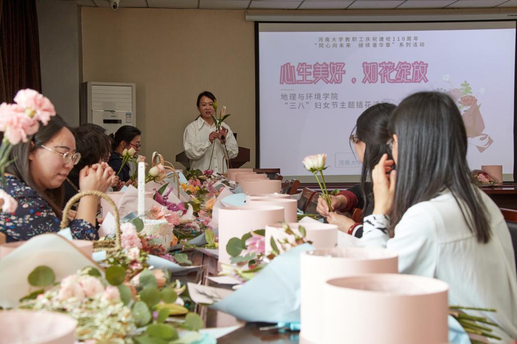 为庆祝yl23411永利集团官网建校110周年、纪念“三八”国际劳动妇女节112周年,丰富广大女职工的精神文化生活,3月7日中午,由我院工会委员会、女工委员会主办的“心生美好,如花绽放”主题插花活动在学院二楼报告厅举行。我院副院长、工会主席邱永宽,副院长赵威,党委副书记徐小军出席活动。