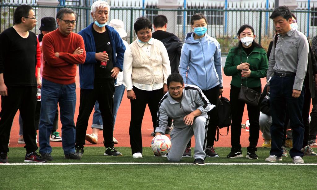 本次运动会共六个项目,分别是盲人摸象、带球绕杆、托球跑、四人五足、实心球掷准和点球大战。各项比赛按名次先后记分,根据比赛的总得分进行排名。赛场上,教师们尽情挥洒汗水,场外观众也时刻关注比赛动向,为参赛教师加油鼓气、呐喊助威,场面欢快热闹,留下阵阵欢声笑语。盲人摸象环节展现了教师对距离预估的准确判断力;带球绕杆项目展现教师们非凡的控球能力;拖球跑环节中更是欢快无比、不亦乐乎,教师们在保证乒乓球不掉落的情况下,火速向前,健步如飞,将球移交给接力队员,尽力缩短小组用时;四人五足的游戏中,教师们以响亮整齐的口号,同心齐步,超越向前,展现出互帮互助,团结协作的精神;最后的点球大战,教师们用一次次精彩的射门为本次趣味运动会画上完美的句号。