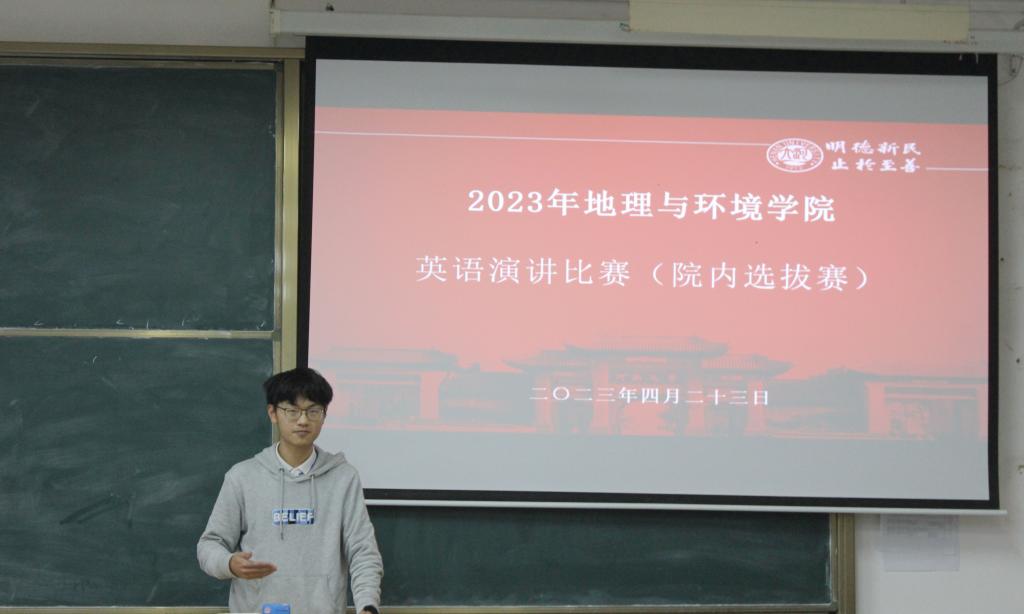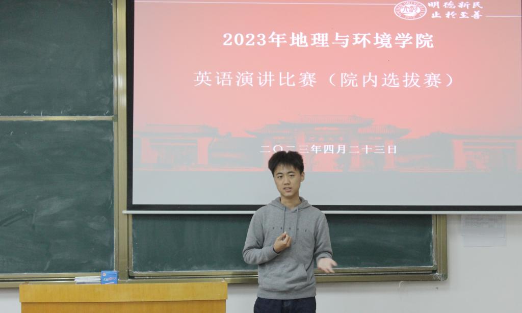 4月23日上午,yl23411永利集团官网第十九届英语演讲比赛地理与环境学院院内选拔赛于yl23411永利集团官网金明校区综合教学楼2202举行。外语学院研究生郝滢滢、陈若楠、张志鑫、任文盼担任评委。2022级学生刘子嘉担任主持。