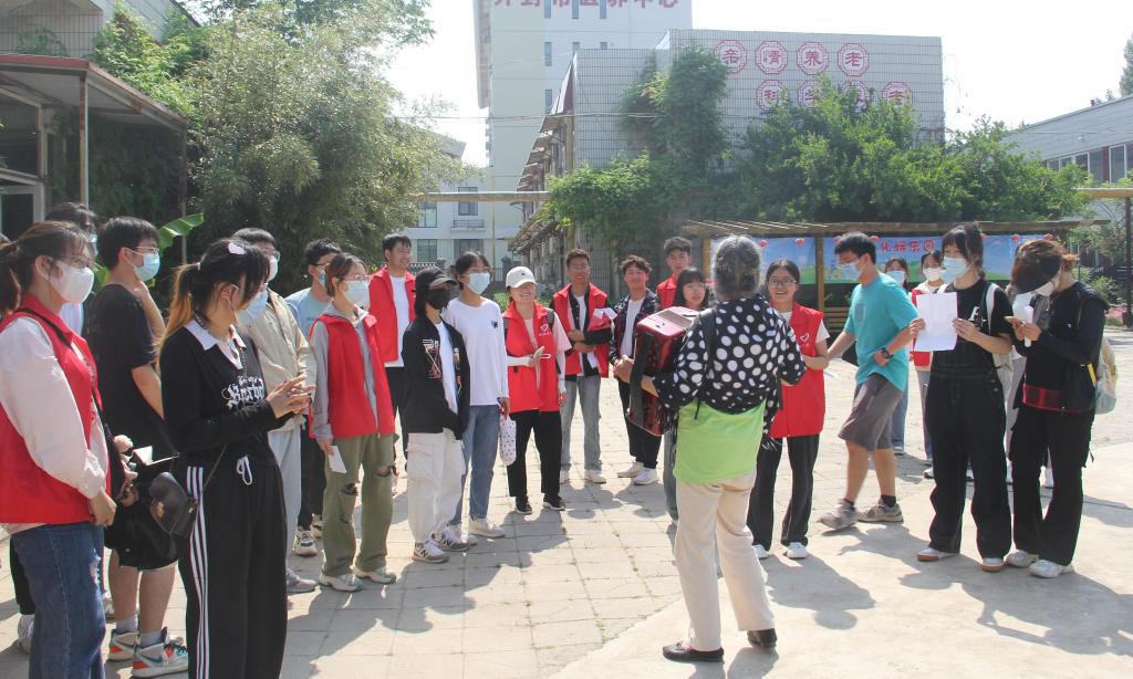 活动现场,由孟柯担任主持人,向老人们介绍志愿者精心准备的歌舞节目。土木建筑学院的志愿者表演了诗朗诵《我和我的祖国》与歌曲《探清水河》,我院学生带来歌曲舞蹈《听我说谢谢你》与《粉红色的回忆》,勾起了老一辈建设者的青春回忆。老人们打着节奏,挥舞着手中的彩色丝带,庭院里欢声笑语此起彼伏。在欢快的氛围下,台下的老人们也纷纷上台表演才艺,一曲《红色娘子军》,展现了他们不减当年的爱国热忱。郑淑宾奶奶用手风琴演奏的《山楂树》,更是讲述了她曾经的事迹。她还寄语志愿者们:要好好学习、珍惜时光年华。表演结束后,志愿者们在室内同老人们聊天、下象棋,听他们讲述曾经的动人故事,活动在大家的欢声笑语中结束。
