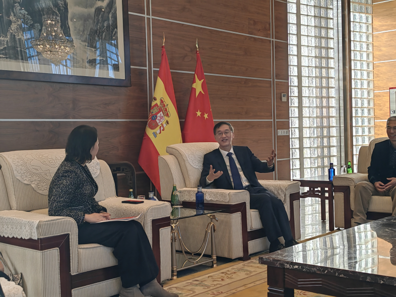11月21日,代表团首先访问了中国驻西班牙王国大使馆,中国驻西班牙王国大使姚敬、教育参赞赵伟民等亲切接见了代表团,姚敬大使表示,2023年恰逢中西建交50周年,两国高层互动频繁,在高等教育领域签署了新的教育合作执行计划。他希望大家以此次访问为契机,进一步加强中西两国高校间的合作交流,为中西人文交流作出更大贡献。