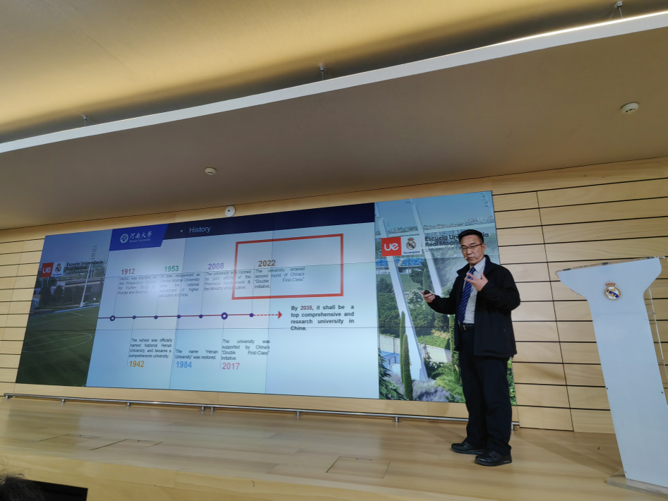 副校长傅声雷在西班牙马德里欧洲大学宣讲yl23411永利集团官网历史、学科及国际化概况