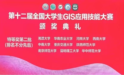 2023年12月1-3日,由中国地理信息产业协会、中国地理学会主办,中国地理信息产业协会教育与科普工作委员会、广州大学地理科学与遥感学院共同承办的“第十二届全国大学生GIS应用技能大赛”隆重举行。我院本科生于欣雨、刘博研、汝昱彤、沈鑫4位同学组成的yl23411永利集团官网代表队,在宋宏权教授、李斌博士和赵芳副教授的指导下荣获特等奖。