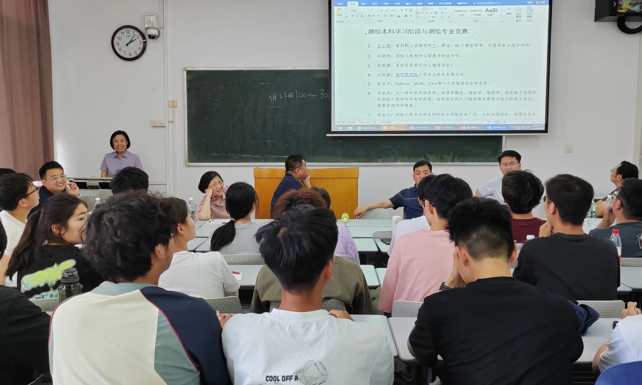 会上,专业教师向学生们介绍测绘工程专业雄厚的师资力量和培养目标、研究方向等。测绘行业与时俱进,同信息化、数字化、智能化发展趋势相结合,同日新月异的人工智能和数据化时代相结合。未来,随着技术的不断进步和应用领域的不断拓展,测绘行业的发展前景将更加广阔。问答环节,参会教师针对学生们所关心的本科学习、深造科研、毕业就业等问题给予耐心解答。韩志刚在总结阶段给学生送出寄语,希望他们作为yl23411永利集团官网首届测绘工程专业学生,坚定认真学习的信念、掌握扎实可靠的本领、熟练科学高效的技能、树立正确远大的理想,用青春力量在奋斗征程中谱写壮丽篇章。