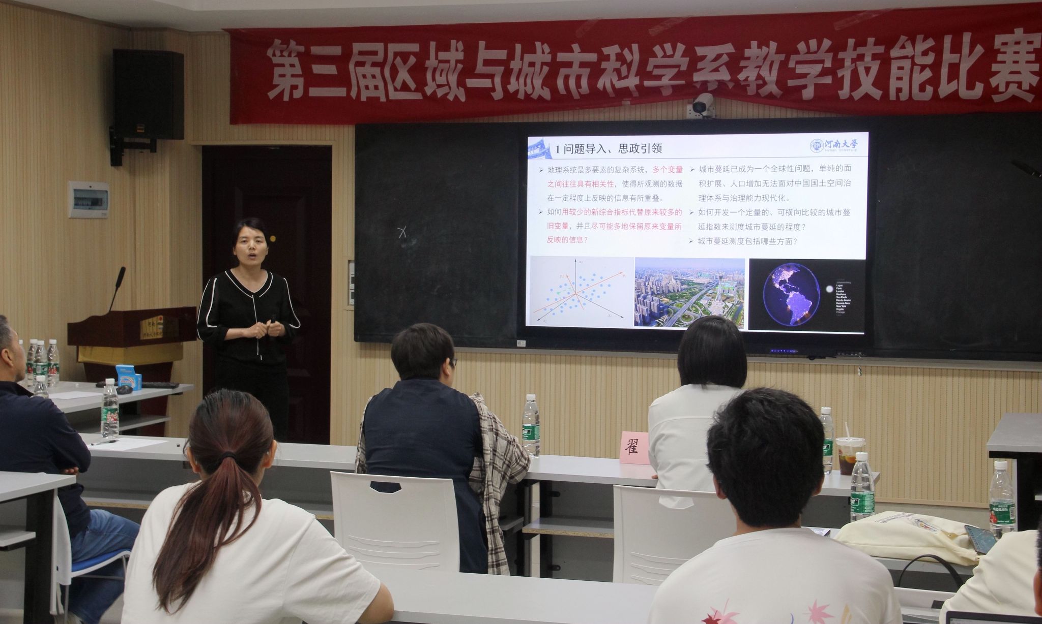 为进一步提升我院区域与城市科学系教师的教学能力、推动教学事业高质量发展,实现教学相长、以赛促教,5月25日下午,我院在金明校区综合教学楼1101教室举办第三届区域与城市科学系教学技能大赛,教师别乾龙、李天奇、张丽君参加比赛。比赛由我院区域与城市科学系主任翟彬主持,特邀yl23411永利集团官网教育学部副教授朱书慧、学院副院长丁志伟、教授刘静玉共同担任比赛评委。
