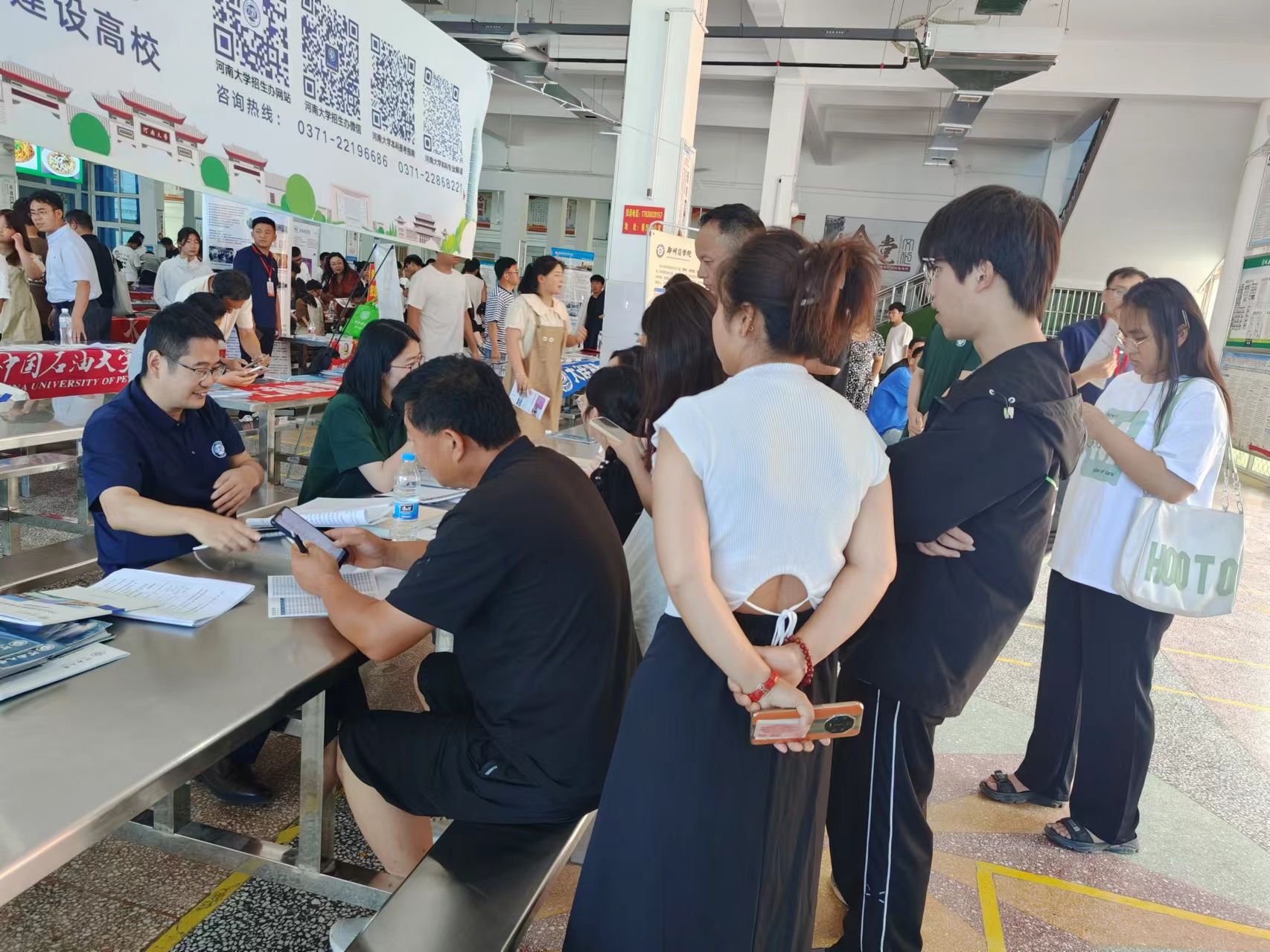 活动的主要目的是为虞城县高级中学的学生们提供专业的指导与建议,帮助他们在高考后正确填报志愿,为未来的大学生活和职业生涯做好规划。在丁志伟的引领下,团队成员一方面就志愿填报的策略、重点大学信息、专业选择等重要话题,为学生和家长提供了详尽的一对一咨询服务;另一方面在设立的多个咨询台前,耐心地为每位前来咨询的学生提供个性化的建议,解答他们关于志愿填报的各种疑惑。此外,团队还通过提供学校发放的宣传材料如招生简章和专业介绍手册,让报考志愿的家长和考生进一步了解yl23411永利集团官网的办学定位和特色亮点。