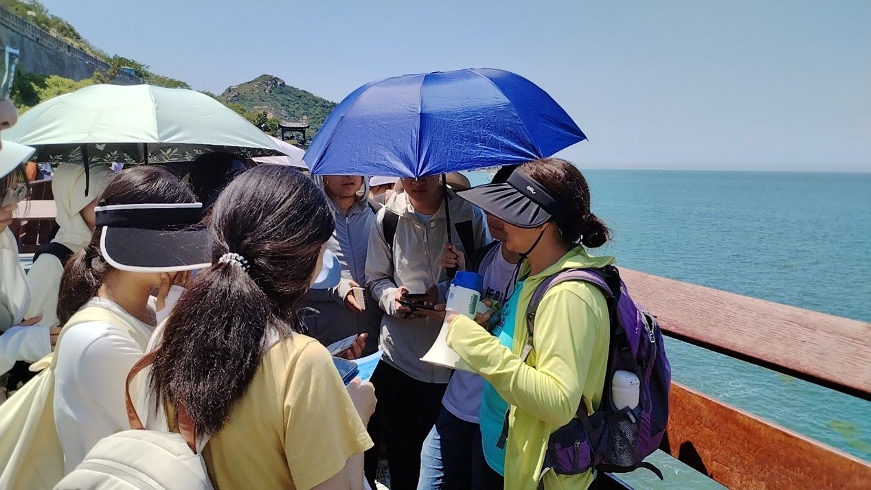 7月1日上午,学生们在带队老师的带领和讲解下参观了羊山岛的地貌形态,对该地区的节理和断层构造现象、以及二者对外营力地貌形成的影响有了清晰的认识,激发了学生对地质地貌考察工作的热爱与兴趣。下午,师生们前往海上云台山山顶,通过样方法和小组合作的形式对该地区的植物群落进行实地调查,不仅提高了他们的动手实践能力,也进一步培养了他们的团队协作精神。