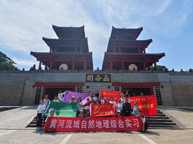 下午,联合实习队来到了函谷关,其位于中国河南省灵宝市境内的崤山与秦岭之间的山谷中,是古代丝绸之路上的一个重要关隘,也是历史上著名的军事要塞。这里不仅承载着深厚的历史文化意义,还具有独特的地理位置。在讲解员的讲解下,联合实习队不仅详细了解了老子的哲学思想和《道德经》的创作过程,通过典故“紫气东来”、“有无相生”,领略了古人的智慧和思想。此外,站在关前讲解员向我们介绍了函谷关的战略位置——其作为古代中原通往关中的咽喉要道,所处的地势险要,北临黄河,南接嵩山,两侧山势陡峭,一直是兵家必争之地,对于研究古代交通、军事防御以及区域经济交流具有极其重要的意义。结合对函谷关实景探索以及函谷关全景图的观测,同学们深刻认识到自古以来其作为军事要地起着重要的作用,素有“一夫当关,万夫莫开”的赞誉。
