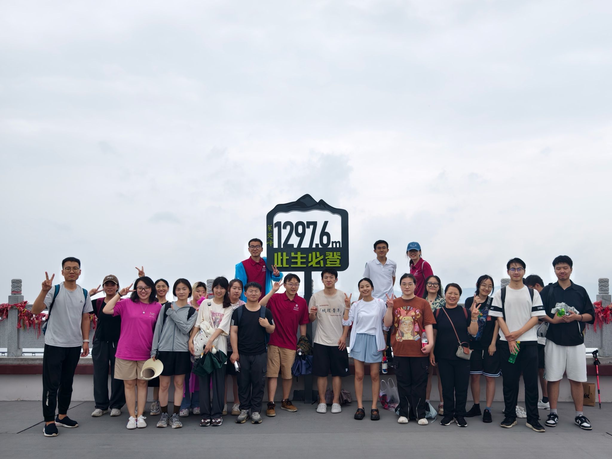 在经过一个小时的辛苦爬行后,同学们登上了茱萸峰峰顶,霎时间,只见云海翻涌、仙气漫山,真给人一种“飘飘然如遗世独立,羽化而登仙”之感。